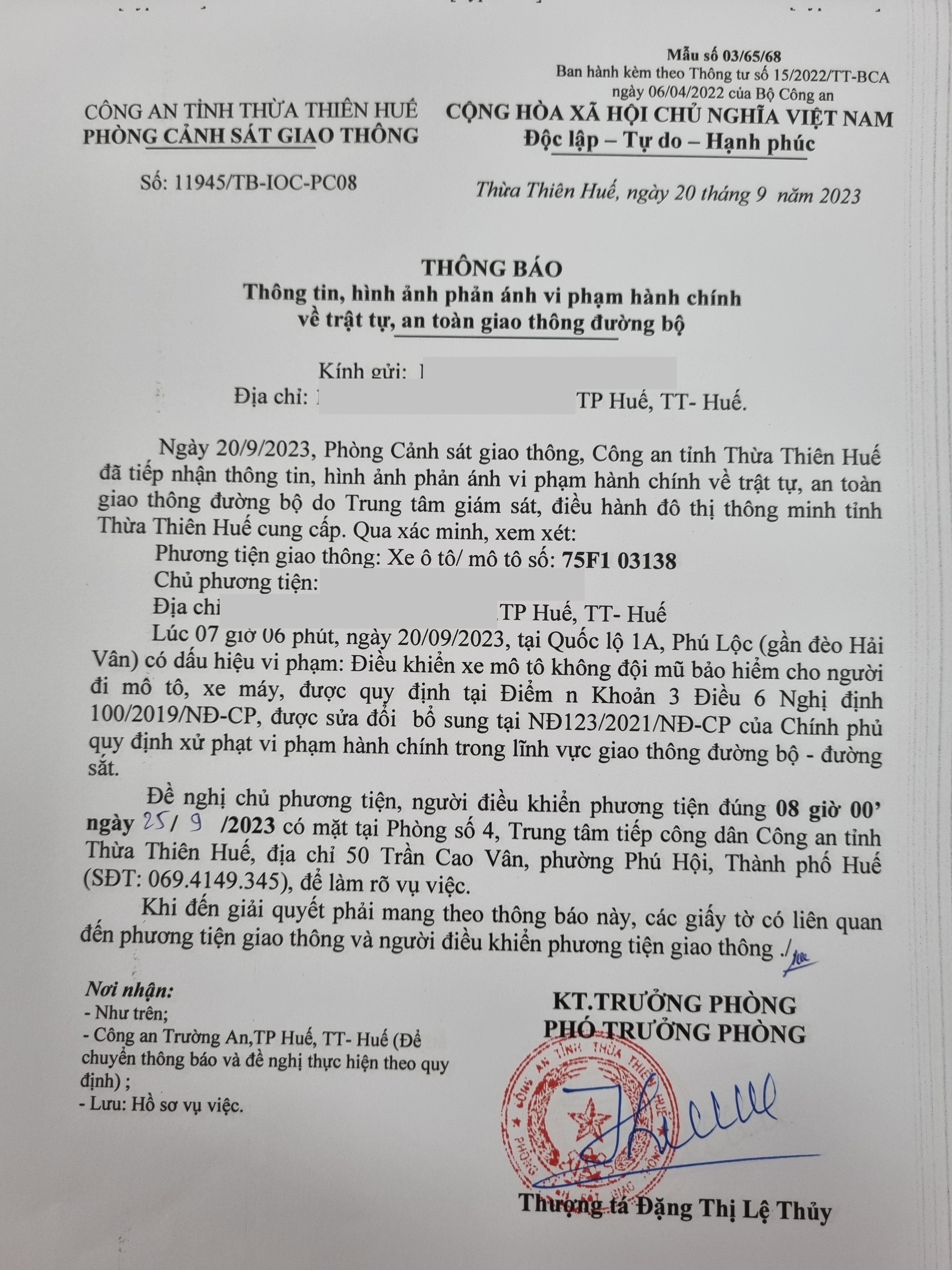 Phòng Cảnh sát giao thông đã gửi thông báo yêu cầu chủ phương tiện đến làm việc. Đồng thời, gửi thông báo đến Công an xã/phường/thị trấn (nơi thường trú của chủ phương tiện). Tuy nhiên, đến nay chủ phương tiện vẫn chưa đến làm việc theo yêu cầu. Phòng Cảnh sát giao thông sẽ tiếp tục thông báo cho lực lượng tuần tra kiểm soát trên đường phát hiện, xử lý.