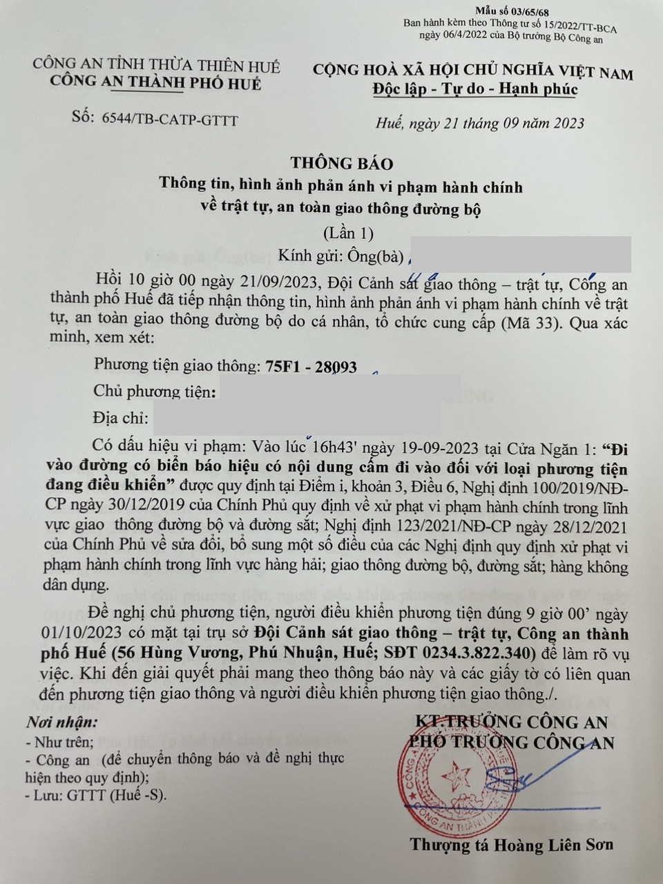 Công an thành phố đã lập hồ sơ, thông báo chủ phương tiện đến làm việc. Tuy nhiên, chủ phương tiện vẫn chưa trình diện tại cơ quan, Công an thành phố Huế sẽ tiếp tục thông báo lực lượng tuần tra trên địa bàn, trong quá trình làm nhiệm vụ phát hiện, xử lý.