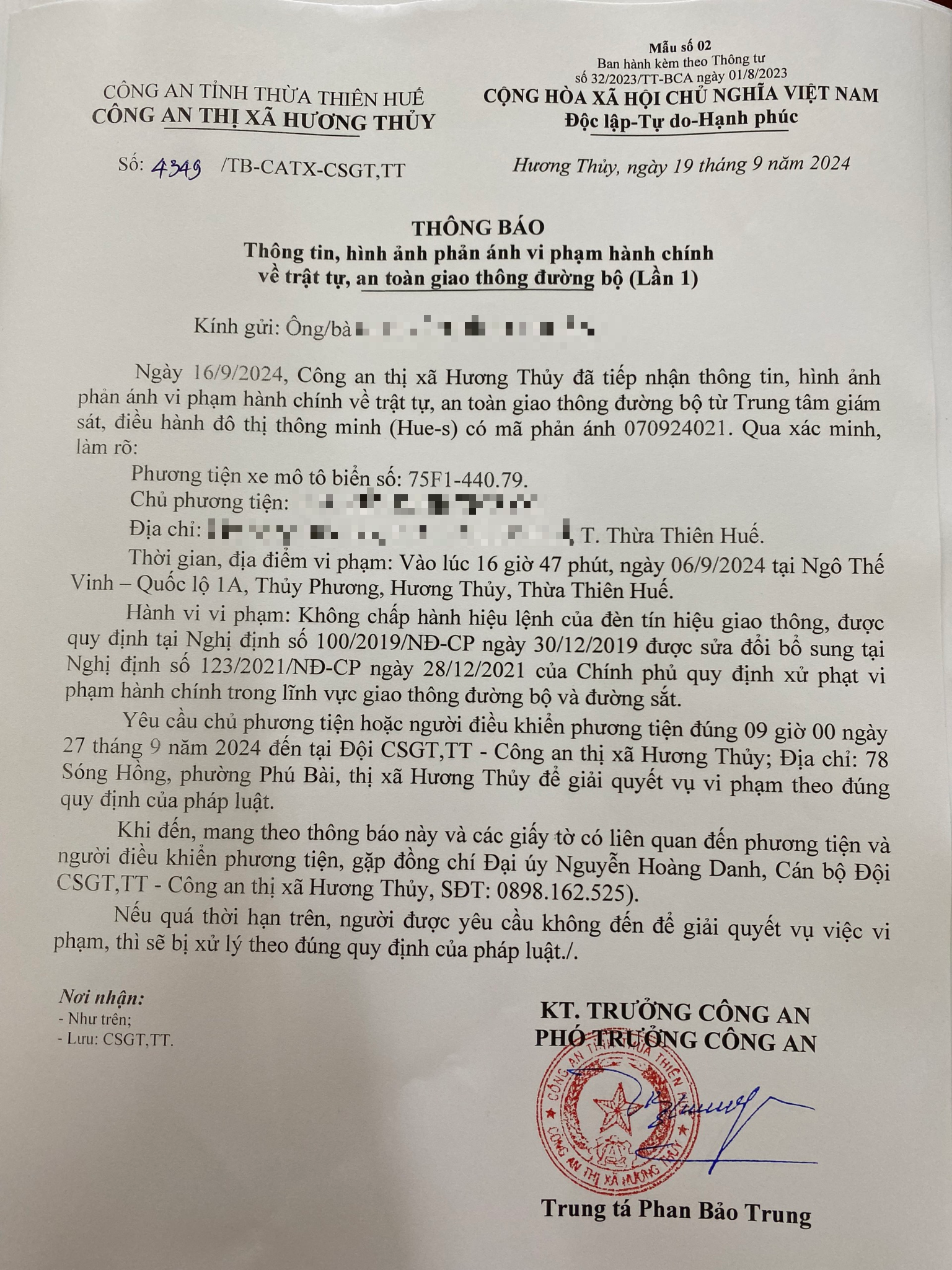 Vấn đề quý Ông/Bà phản ánh, Công an tỉnh đã chỉ đạo Công an thị xã Hương Thủy kiểm tra và xin thông báo kết quả như sau: