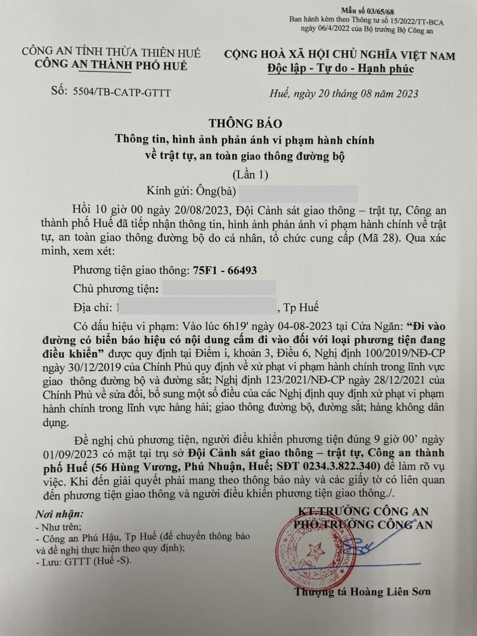Vấn đề Ông/Bà phản ánh, Công an tỉnh đã chỉ đạo Công an thành phố Huế xin thông báo kết quả xử lý như sau: