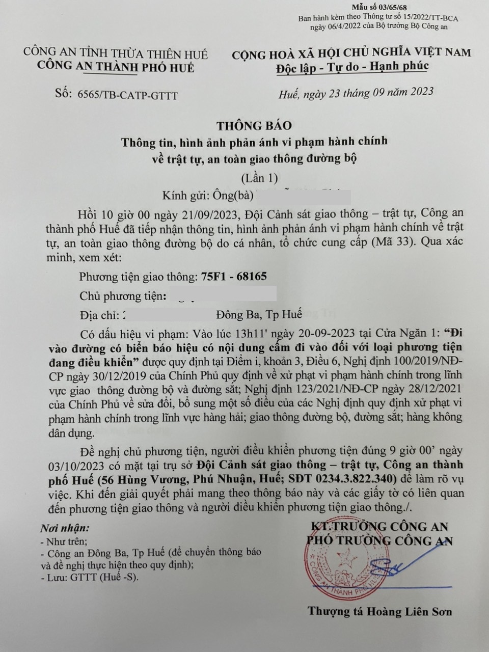 Công an thành phố đã lập hồ sơ, thông báo chủ phương tiện đến làm việc. Tuy nhiên, hiện chủ phương tiện vẫn chưa trình diện tại cơ quan. Công an thành phố sẽ thông báo lực lượng tuần tra kiểm soát, trong quá trình làm nhiệm vụ phát hiện, xử lý.