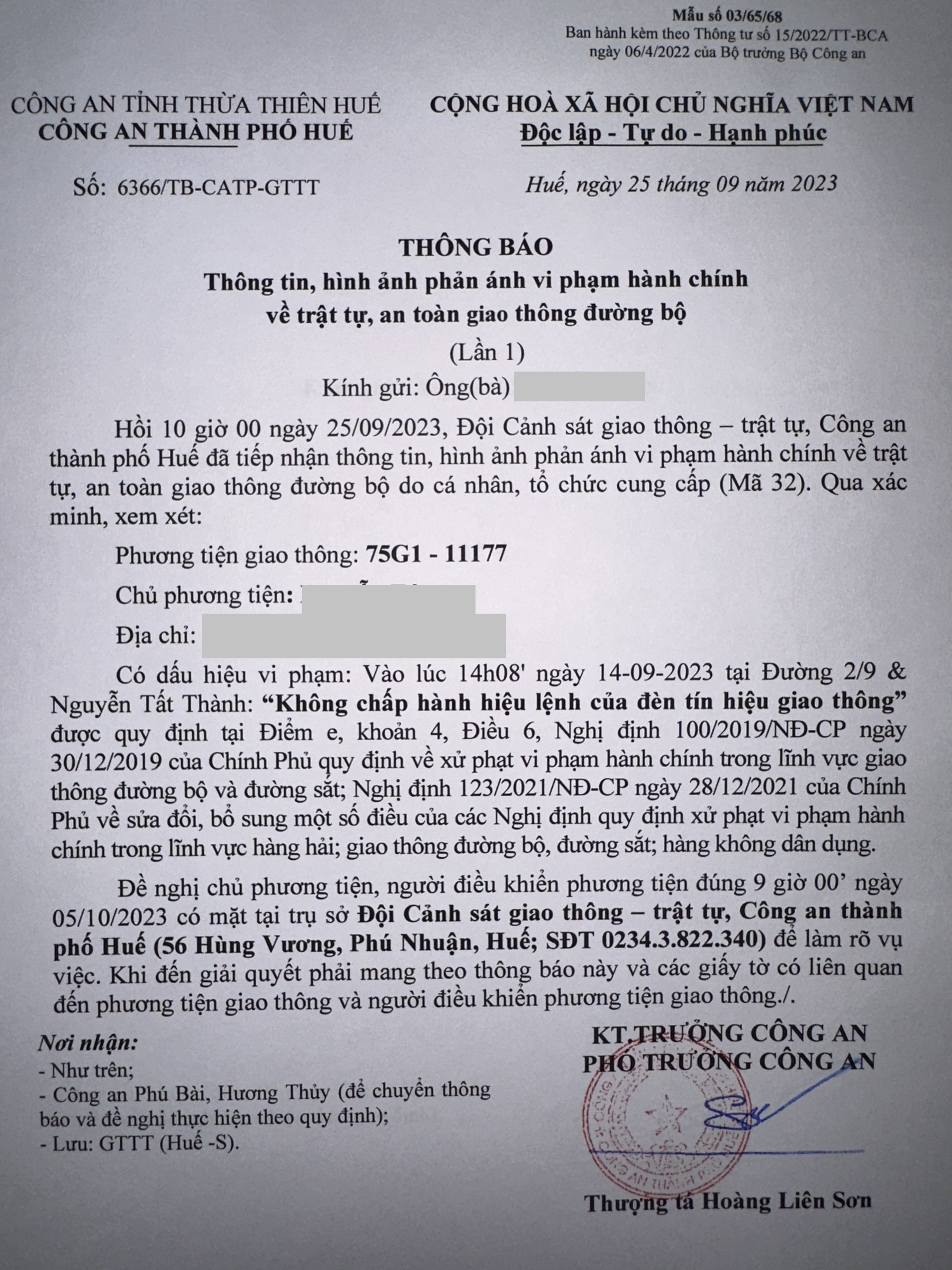 Công an thành phố đã lập hồ sơ, thông báo chủ phương tiện đến làm việc. Tuy nhiên, hiện chủ phương tiện vẫn chưa trình diện tại cơ quan. Công an thành phố Huế sẽ tiếp tục thông báo lực lượng tuần tra trên địa bàn, trong quá trình làm nhiệm vụ phát hiện, xử lý.