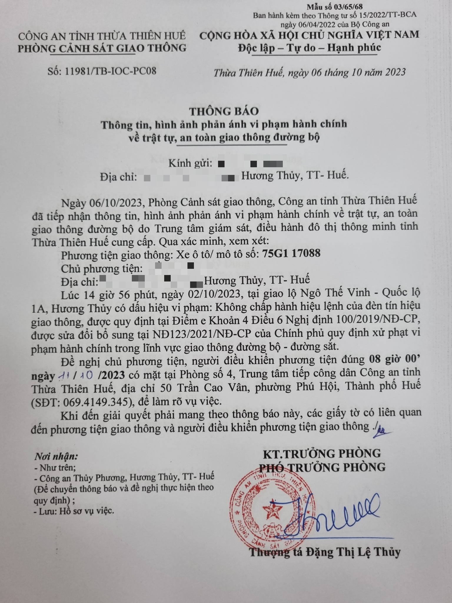 Phòng CSGT đã gửi thông báo, yêu cầu chủ phương tiện đến làm việc theo quy định của pháp luật. Tuy nhiên, đã quá ngày hẹn nhưng chủ phương tiện vẫn chưa đến làm việc theo yêu cầu. Phòng CSGT sẽ tiếp tục thông báo Công an địa phương nơi chủ phương tiện thường trú; đồng thời, thông báo các tổ tuần tra kiểm soát trên địa bàn, trong quá trình làm nhiệm vụ nếu phát hiện sẽ tiến hành dừng xe để xử lý.