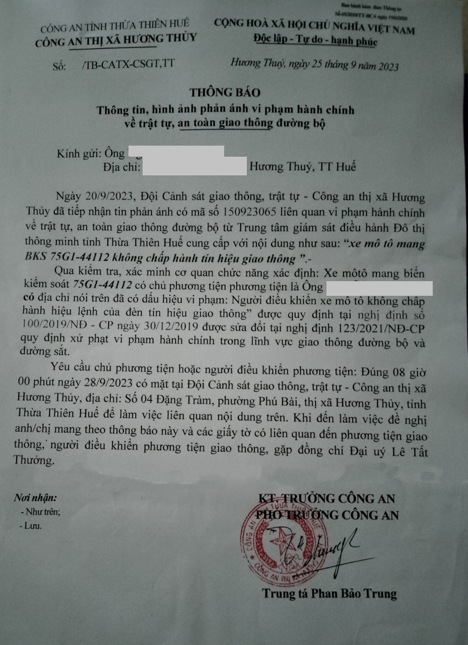 Vấn đề quý Ông/Bà phản ánh, Công an tỉnh đã chỉ đạo Công an thị xã Hương Thủy kiểm tra và xin thông báo kết quả như sau: