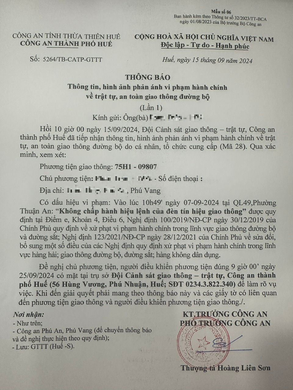 Vấn đề quý Ông/Bà phản ánh, Công an tỉnh đã chỉ đạo Công an thành phố Huế kiểm tra và xin thông báo kết quả như sau:
