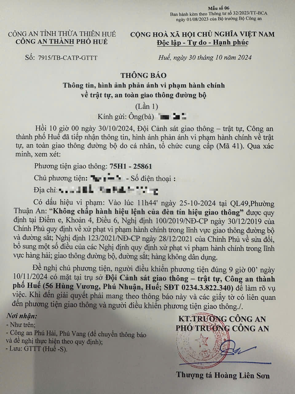 Vấn đề quý Ông/Bà phản ánh, Công an thành phố Huế kiểm tra và xin thông báo kết quả như sau: