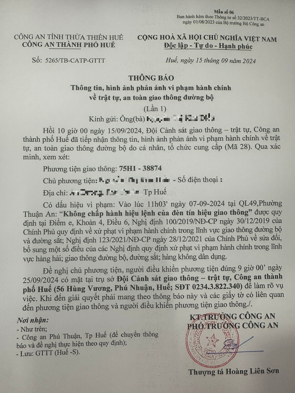 Vấn đề quý Ông/Bà phản ánh, Công an tỉnh đã chỉ đạo Công an thành phố Huế kiểm tra và xin thông báo kết quả như sau: