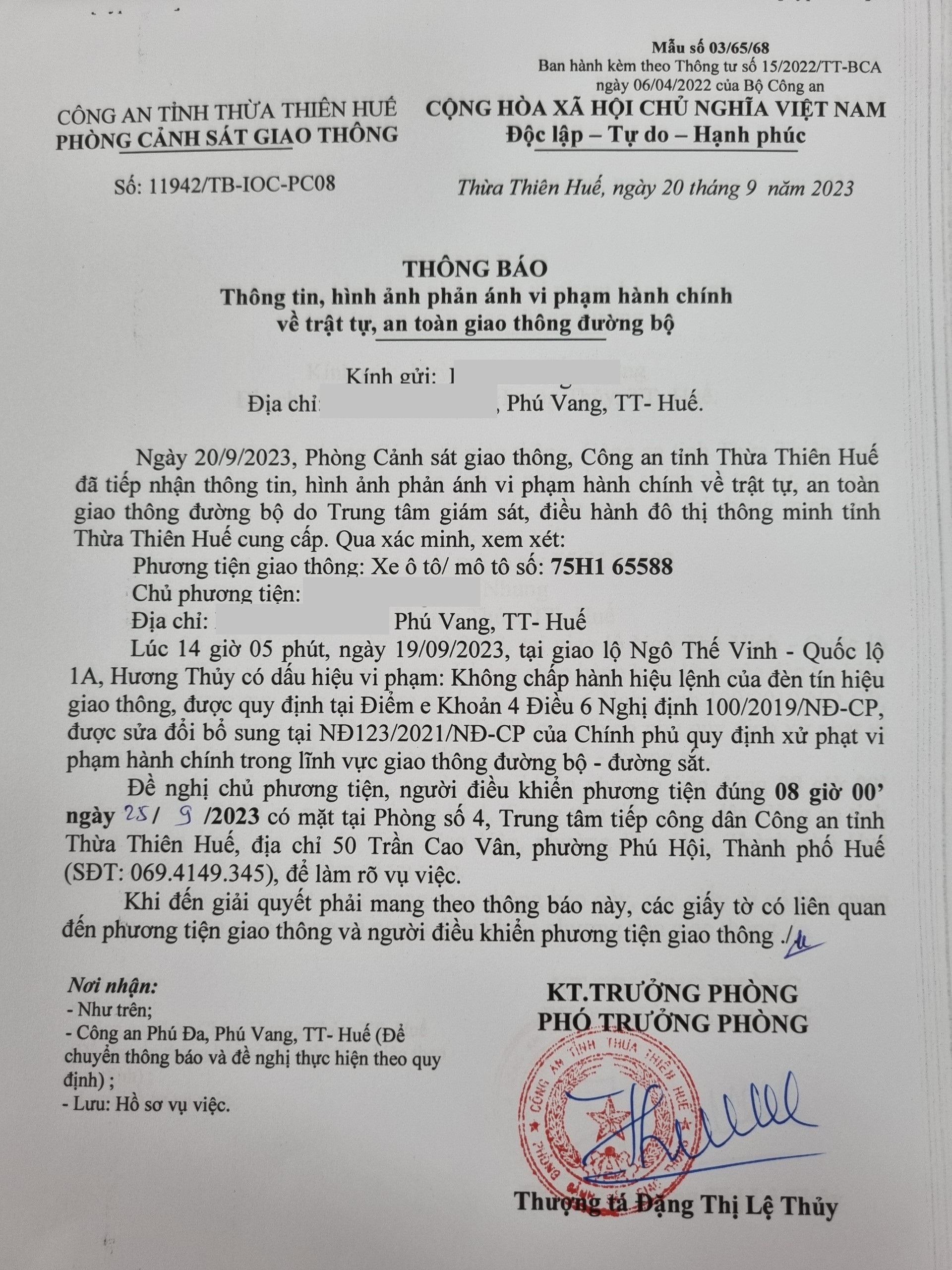 Phòng CSGT đã gửi thông báo, yêu cầu chủ phương tiện đến làm việc theo quy định của pháp luật. Tuy nhiên, đã quá ngày hẹn nhưng chủ phương tiện vẫn chưa đến làm việc theo yêu cầu. Phòng CSGT sẽ tiếp tục thông báo Công an địa phương nơi chủ phương tiện thường trú; đồng thời, thông báo các tổ tuần tra kiểm soát trên địa bàn, trong quá trình làm nhiệm vụ nếu phát hiện sẽ tiến hành dừng xe để xử lý.