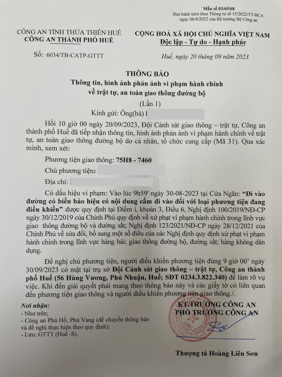 Vấn đề Ông/Bà phản ánh, Công an tỉnh đã chỉ đạo Công an thành phố Huế xin thông báo kết quả xử lý như sau: