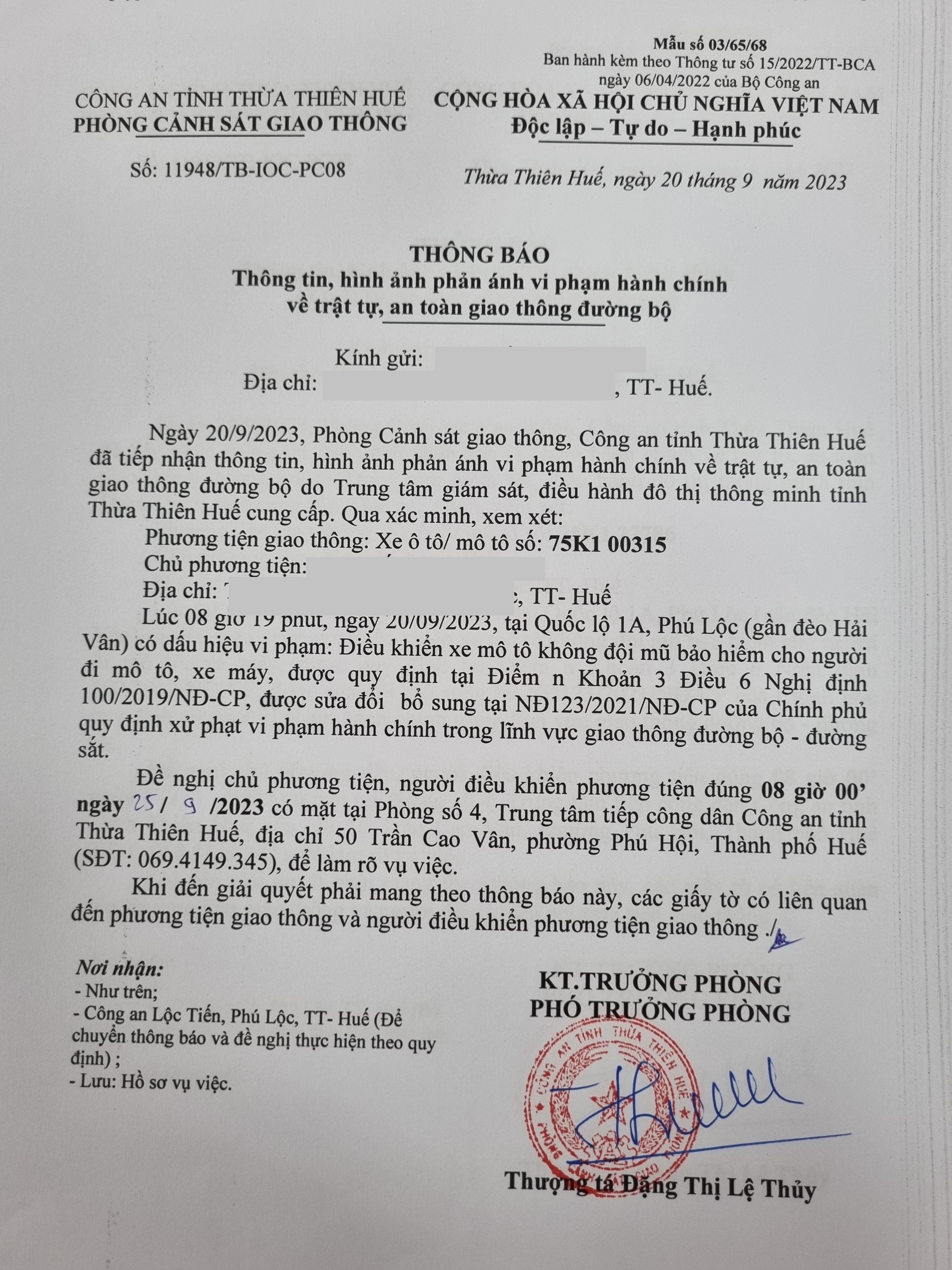 Phòng Cảnh sát giao thông đã gửi thông báo yêu cầu chủ phương tiện đến làm việc. Đồng thời, gửi thông báo đến Công an xã/phường/thị trấn (nơi thường trú của chủ phương tiện). Tuy nhiên, đến nay chủ phương tiện vẫn chưa đến làm việc theo yêu cầu. Phòng Cảnh sát giao thông sẽ tiếp tục thông báo cho lực lượng tuần tra kiểm soát trên đường phát hiện, xử lý.