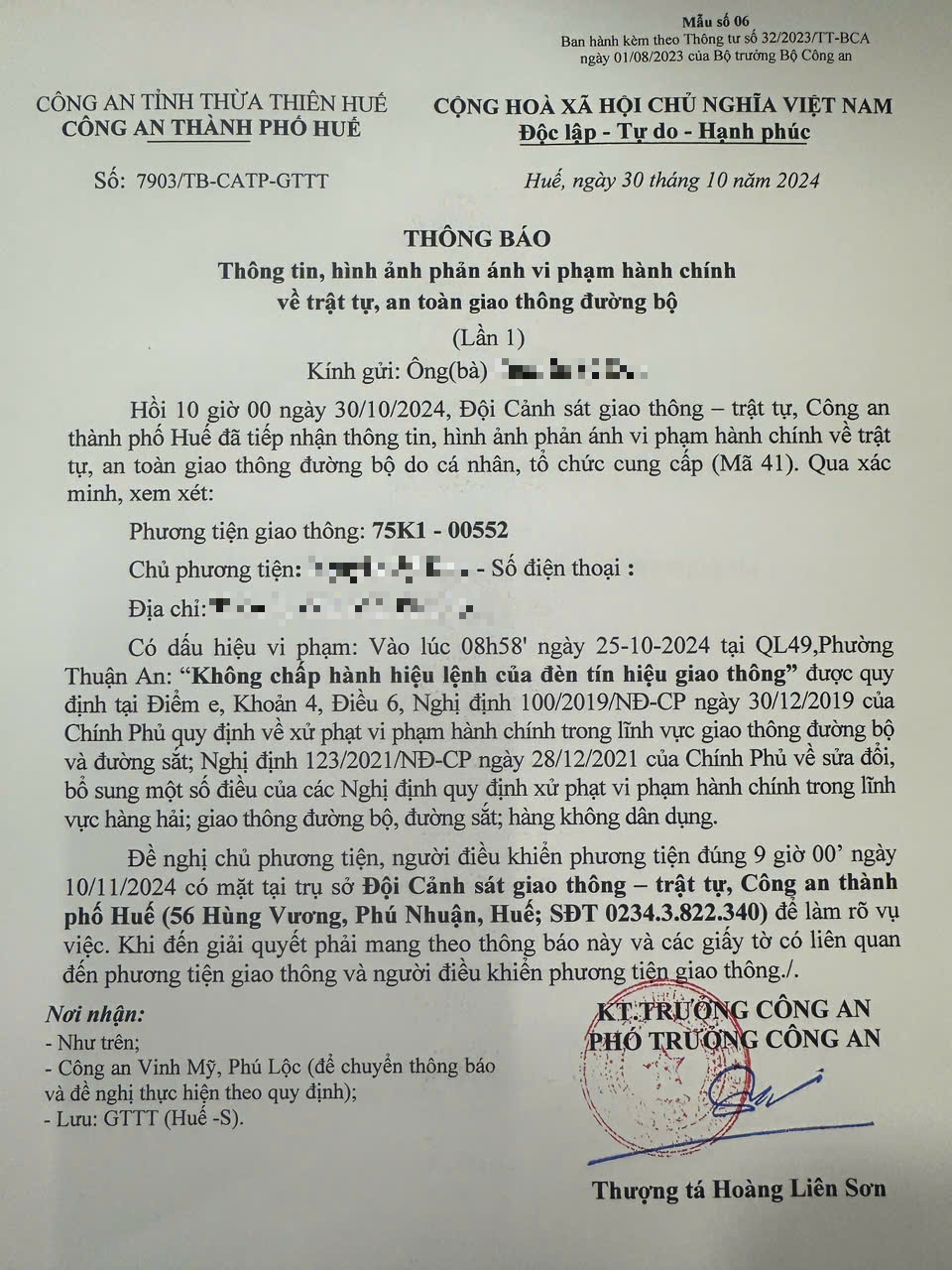 Vấn đề quý Ông/Bà phản ánh, Công an thành phố Huế kiểm tra và xin thông báo kết quả như sau: