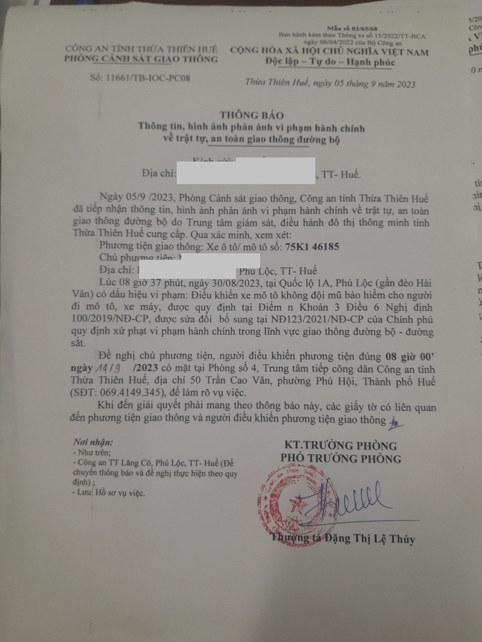 Phòng Cảnh sát giao thông đã gửi thông báo yêu cầu chủ phương tiện đến làm việc. Đồng thời, gửi thông báo đến Công an xã/phường/thị trấn (nơi thường trú của chủ phương tiện). Tuy nhiên, đến nay chủ phương tiện vẫn chưa đến làm việc theo yêu cầu. Phòng Cảnh sát giao thông sẽ tiếp tục thông báo cho lực lượng tuần tra kiểm soát trên đường phát hiện, xử lý.