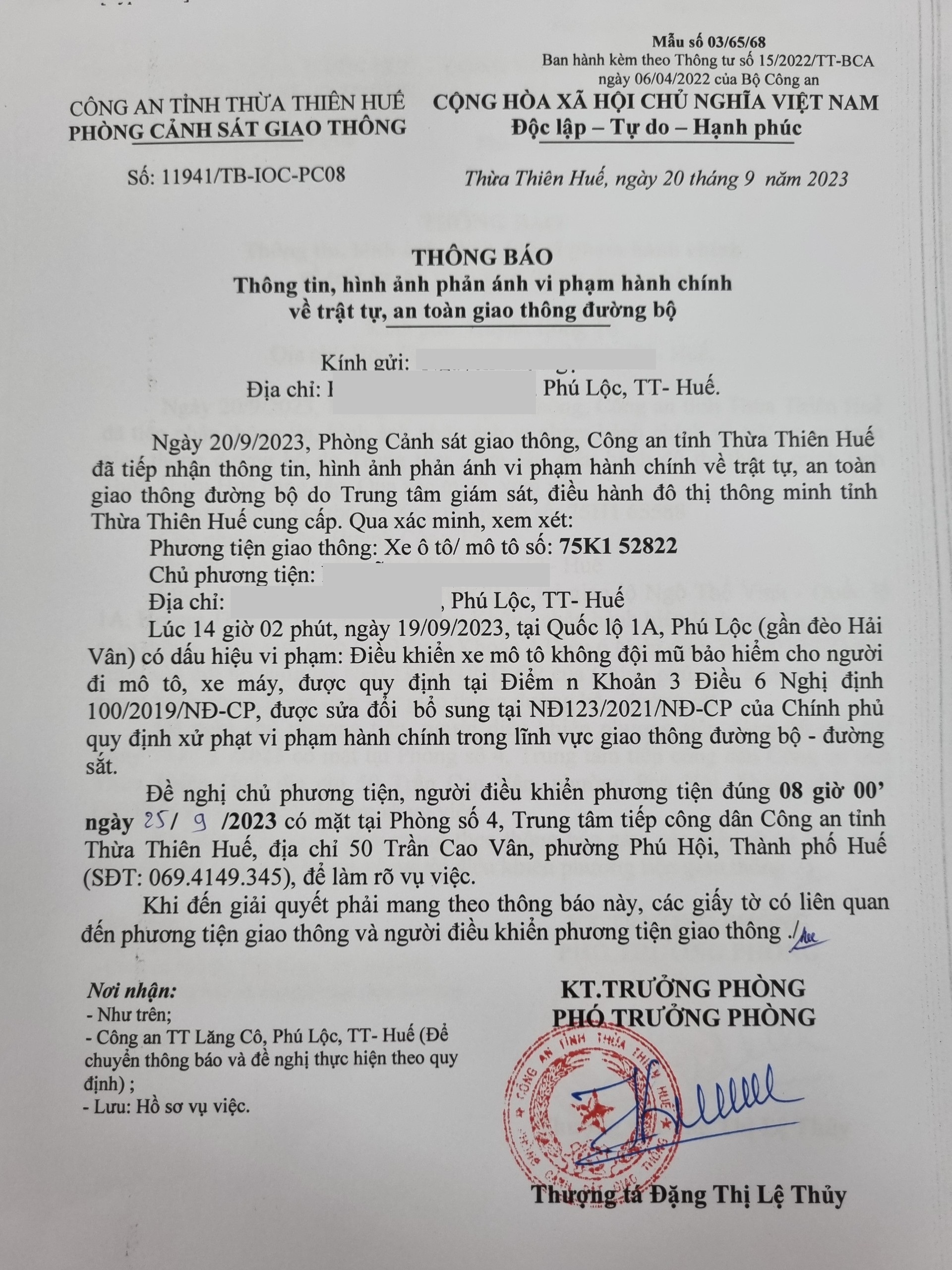 Phòng Cảnh sát giao thông đã gửi thông báo yêu cầu chủ phương tiện đến làm việc. Đồng thời, gửi thông báo đến Công an xã/phường/thị trấn (nơi thường trú của chủ phương tiện). Tuy nhiên, đến nay chủ phương tiện vẫn chưa đến làm việc theo yêu cầu. Phòng Cảnh sát giao thông sẽ tiếp tục thông báo cho lực lượng tuần tra kiểm soát trên đường phát hiện, xử lý.