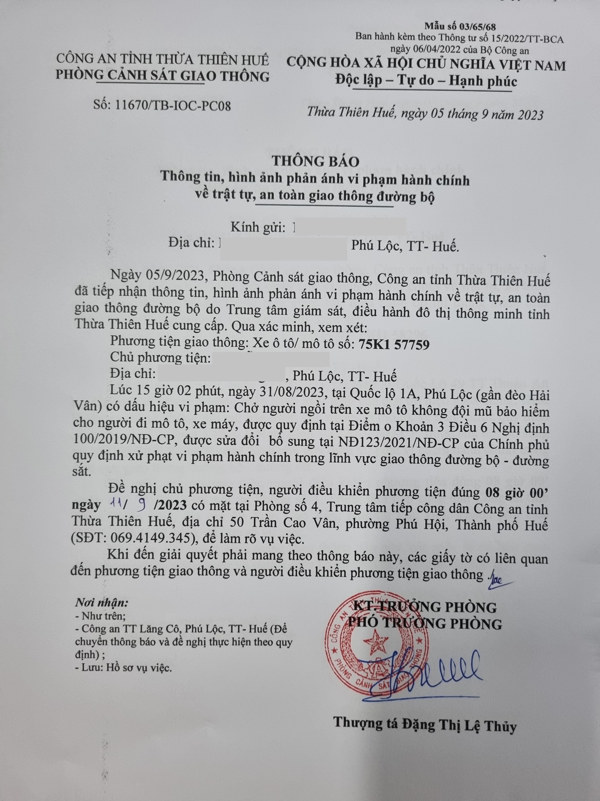 Phòng CSGT đã gửi thông báo, yêu cầu chủ phương tiện đến làm việc theo quy định của pháp luật. Tuy nhiên, đã quá ngày hẹn nhưng chủ phương tiện vẫn chưa đến làm việc theo yêu cầu. Phòng CSGT sẽ tiếp tục thông báo Công an địa phương nơi chủ phương tiện thường trú; đồng thời, thông báo các tổ tuần tra kiểm soát trên địa bàn, trong quá trình làm nhiệm vụ nếu phát hiện sẽ tiến hành dừng xe để xử lý.