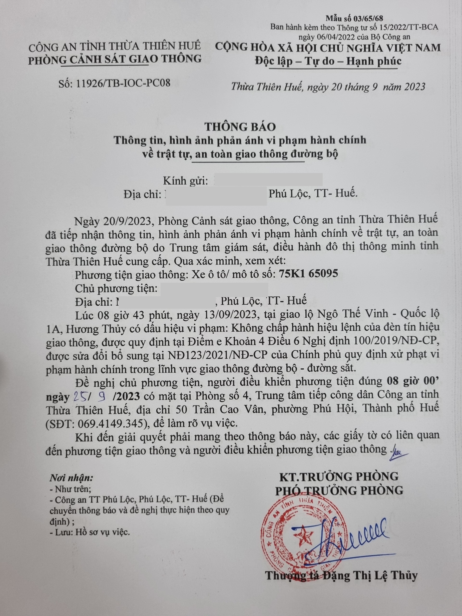 Phòng CSGT đã gửi thông báo, yêu cầu chủ phương tiện đến làm việc theo quy định của pháp luật. Tuy nhiên, đã quá ngày hẹn nhưng chủ phương tiện vẫn chưa đến làm việc theo yêu cầu. Phòng CSGT sẽ tiếp tục thông báo Công an địa phương nơi chủ phương tiện thường trú; đồng thời, thông báo các tổ tuần tra kiểm soát trên địa bàn, trong quá trình làm nhiệm vụ nếu phát hiện sẽ tiến hành dừng xe để xử lý.