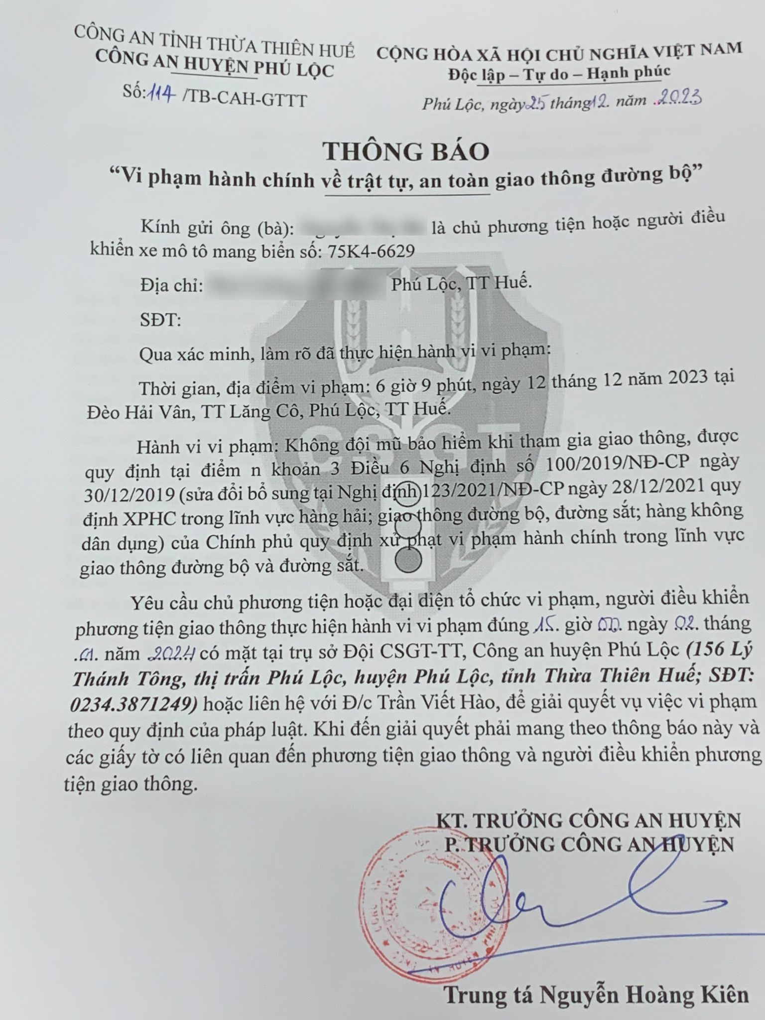 Vấn đề quý Ông/Bà phản ánh, Công an tỉnh đã chỉ đạo Công an huyện Phú Lộc xác minh và xin thông báo kết quả như sau: