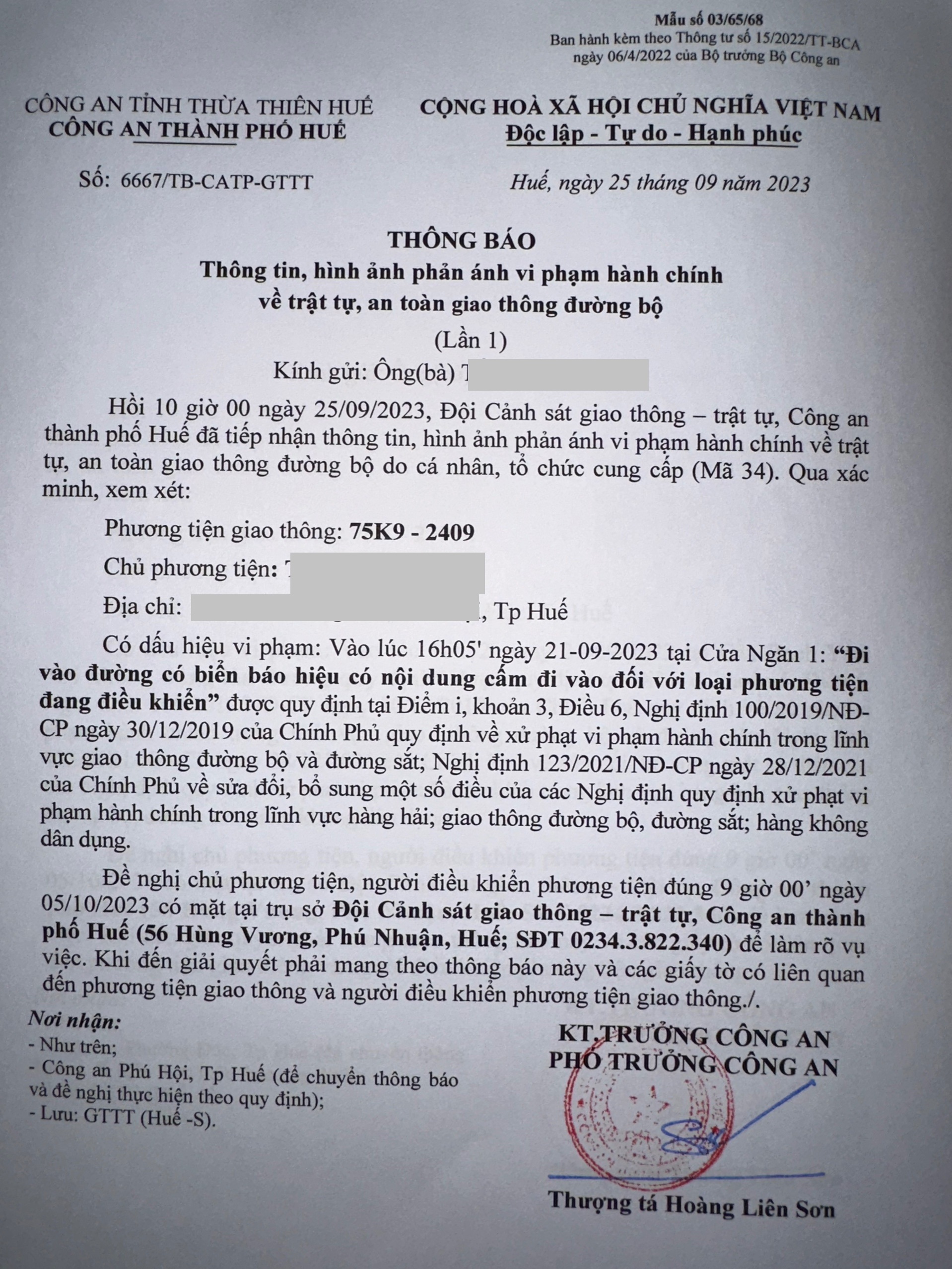 Vấn đề quý Ông/Bà phản ánh, Công an tỉnh đã chỉ đạo Công an thành phố Huế kiểm tra và xin thông báo kết quả như sau: