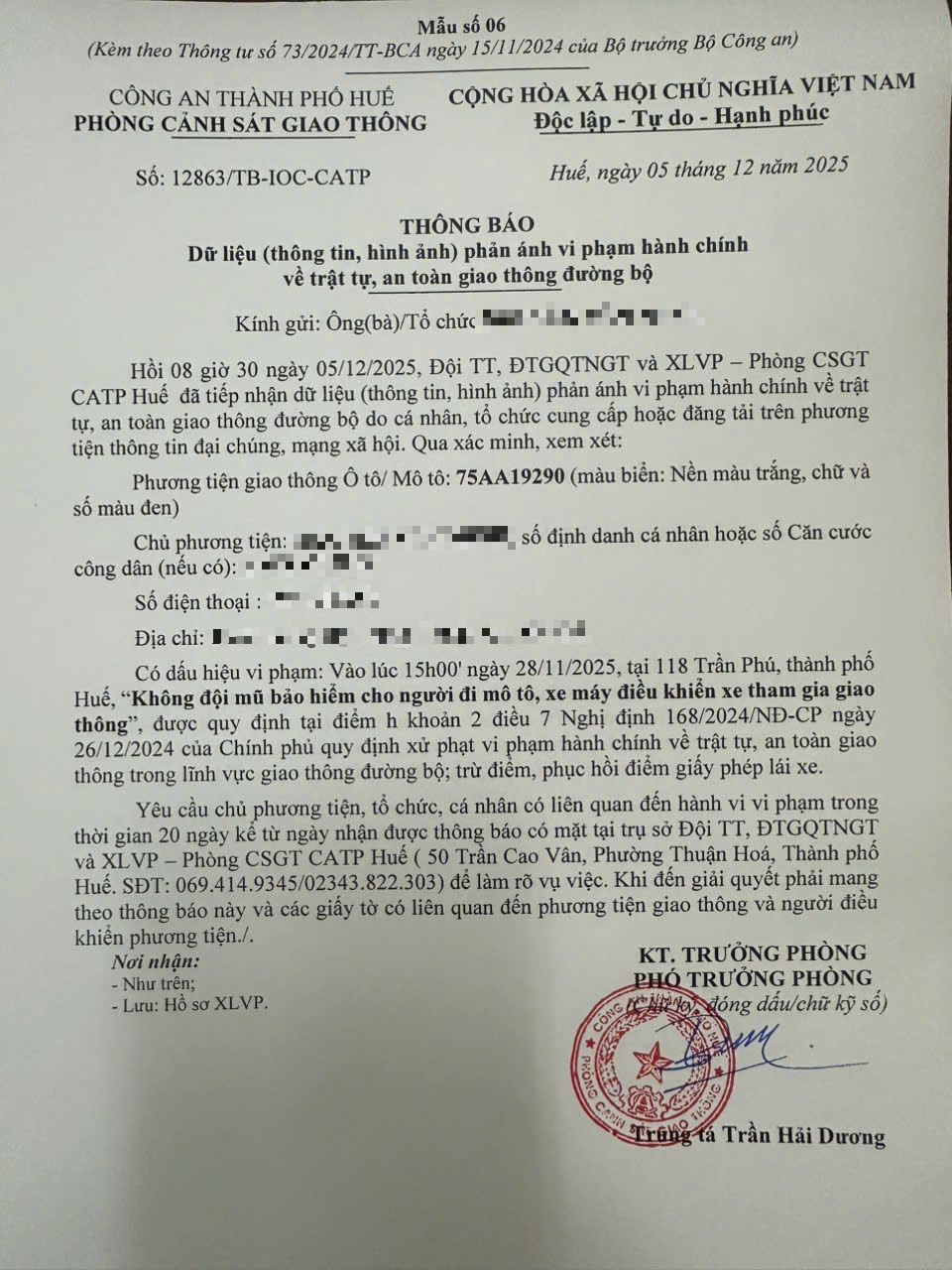 Vấn đề quý Ông/Bà phản ánh, Phòng Cảnh sát giao thông – Công an thành phố Huế đã kiểm tra và xin thông báo kết quả như sau: