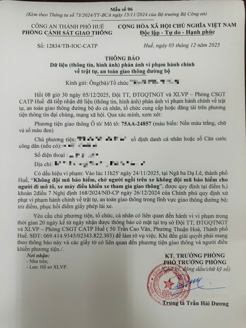 Vấn đề quý Ông/Bà phản ánh, Phòng Cảnh sát giao thông – Công an thành phố Huế đã kiểm tra và xin thông báo kết quả như sau: