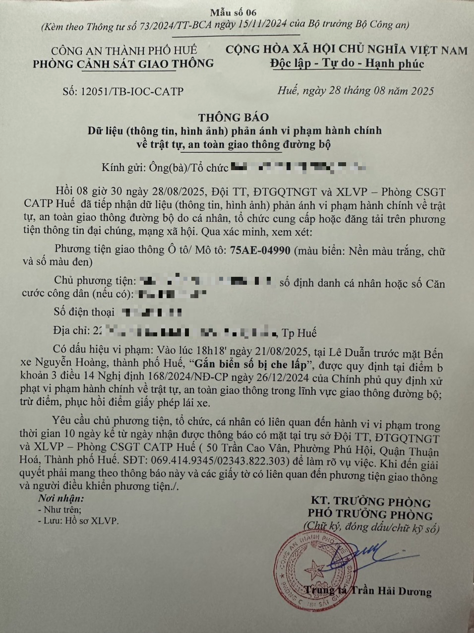 Vấn đề quý Ông/Bà phản ánh, Phòng Cảnh sát giao thông – Công an thành phố Huế đã kiểm tra và xin thông báo kết quả như sau: