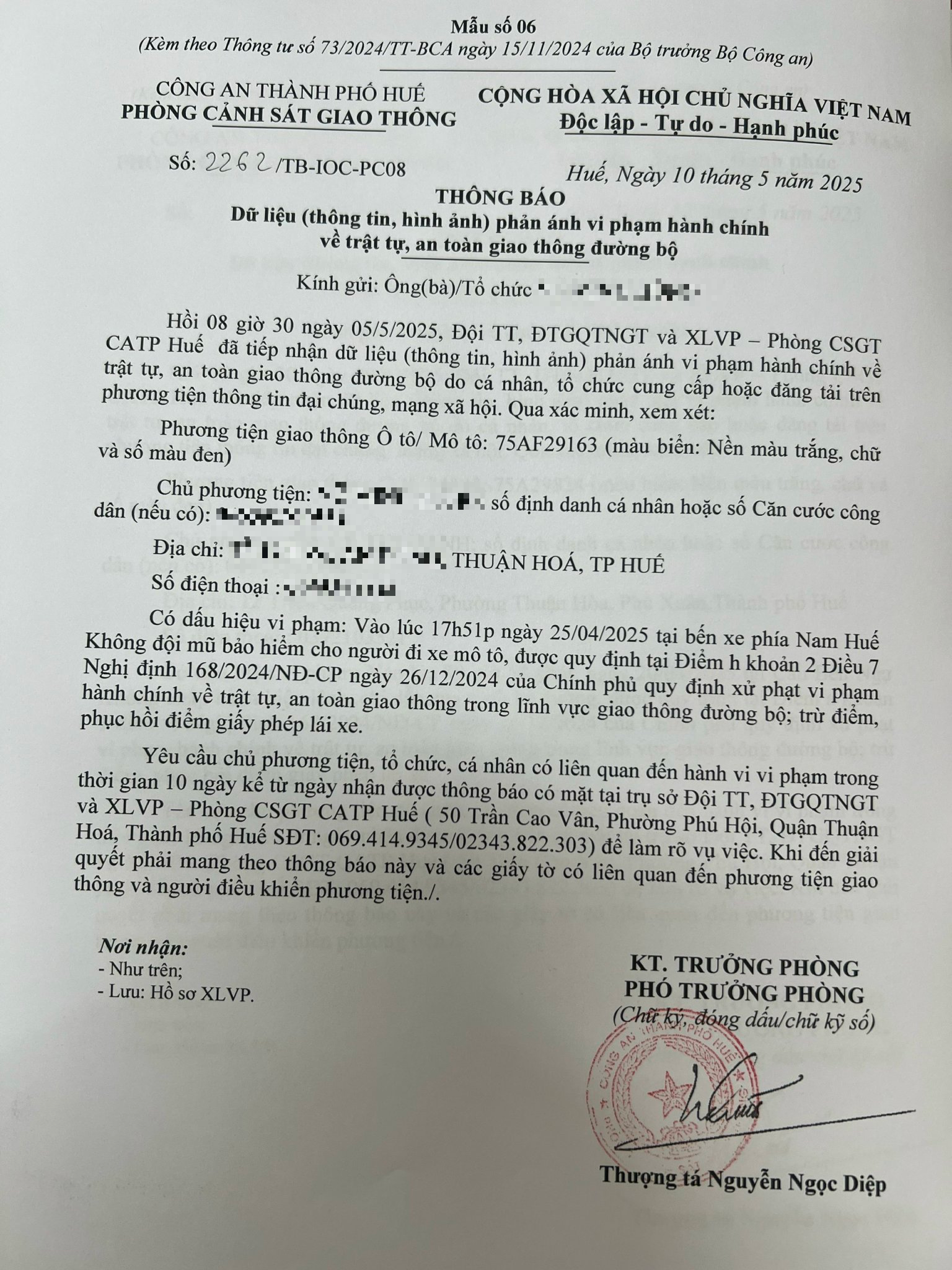 Vấn đề quý Ông/Bà phản ánh, Phòng Cảnh sát giao thông – Công an thành phố Huế đã kiểm tra và xin thông báo kết quả như sau: