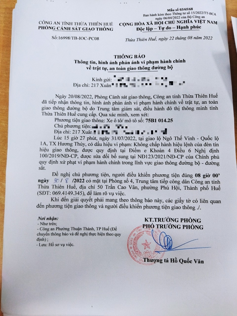 Vấn đề Ông/Bà phản ánh, Công an tỉnh đã chỉ đạo Phòng Cảnh sát giao thông xin thông báo kết quả xử lý như sau: