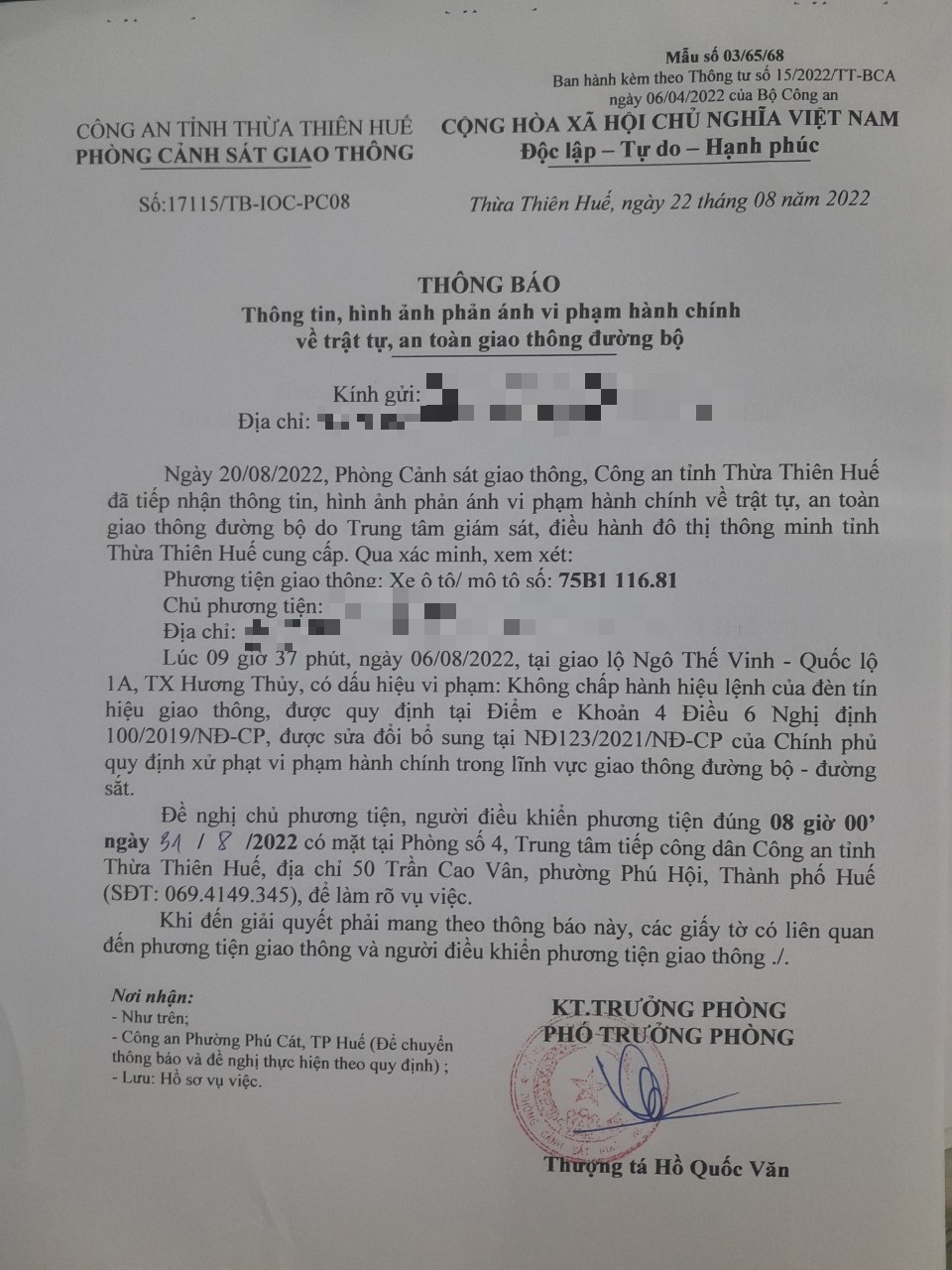 Vấn đề Ông/Bà phản ánh, Công an tỉnh đã chỉ đạo Phòng Cảnh sát giao thông xin thông báo kết quả xử lý như sau:
