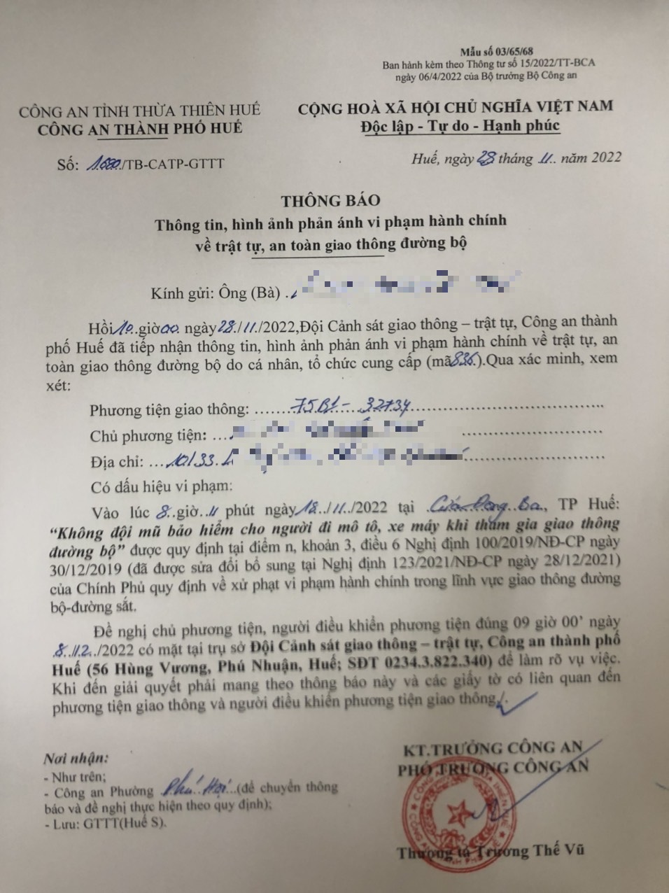 Vấn đề Ông/Bà phản ánh, Công an tỉnh đã chỉ đạo Công an thành phố Huế kiểm tra và xin thông báo kết quả xử lý như sau: