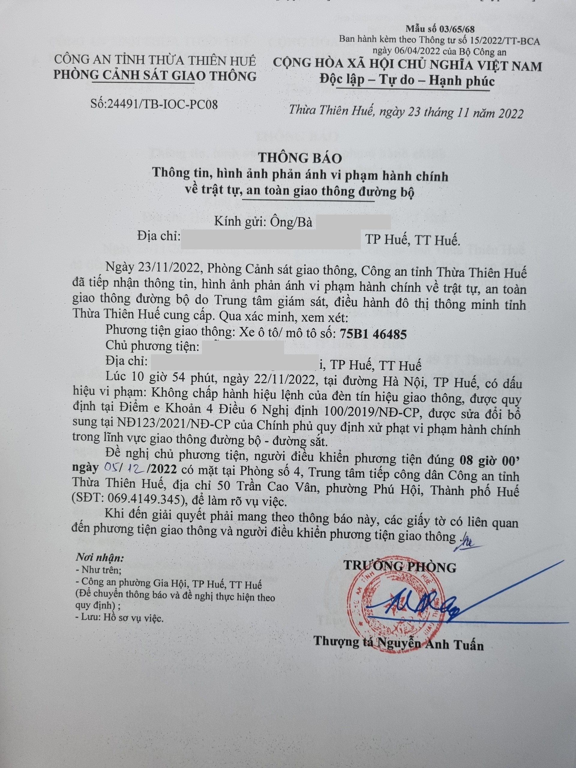 Vấn đề Ông/Bà phản ánh, Công an tỉnh đã chỉ đạo Phòng Cảnh sát giao thông xin thông báo kết quả xử lý như sau: