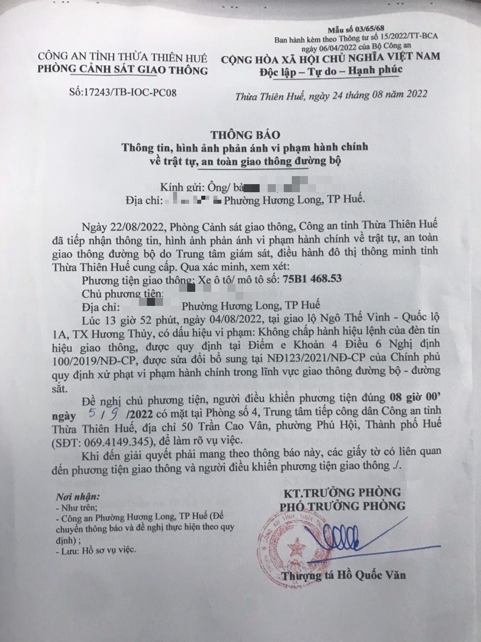 Phòng CSGT đã gửi thông báo, yêu cầu chủ phương tiện đến làm việc theo quy định của pháp luật. Tuy nhiên, đã quá ngày hẹn nhưng chủ phương tiện vẫn chưa đến làm việc theo yêu cầu. Phòng CSGT sẽ tiếp tục thông báo Công an địa phương nơi chủ phương tiện thường trú; đồng thời, thông báo các tổ tuần tra kiểm soát trên địa bàn, trong quá trình làm nhiệm vụ nếu phát hiện sẽ tiến hành dừng xe để xử lý.