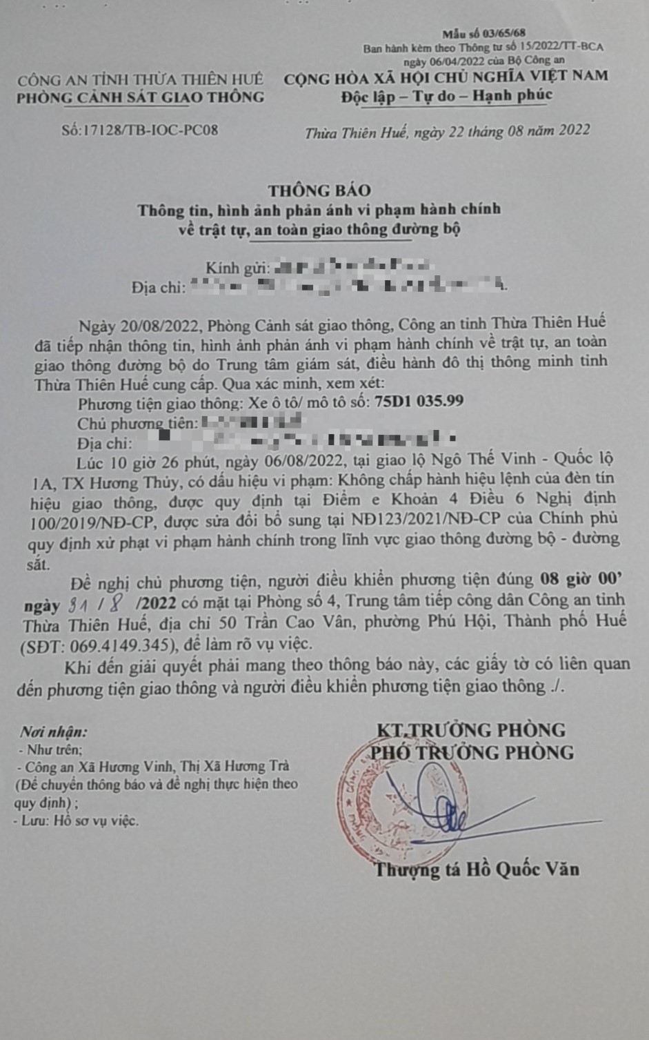 Vấn đề Ông/Bà phản ánh, Công an tỉnh đã chỉ đạo Phòng Cảnh sát giao thông xin thông báo kết quả xử lý như sau: