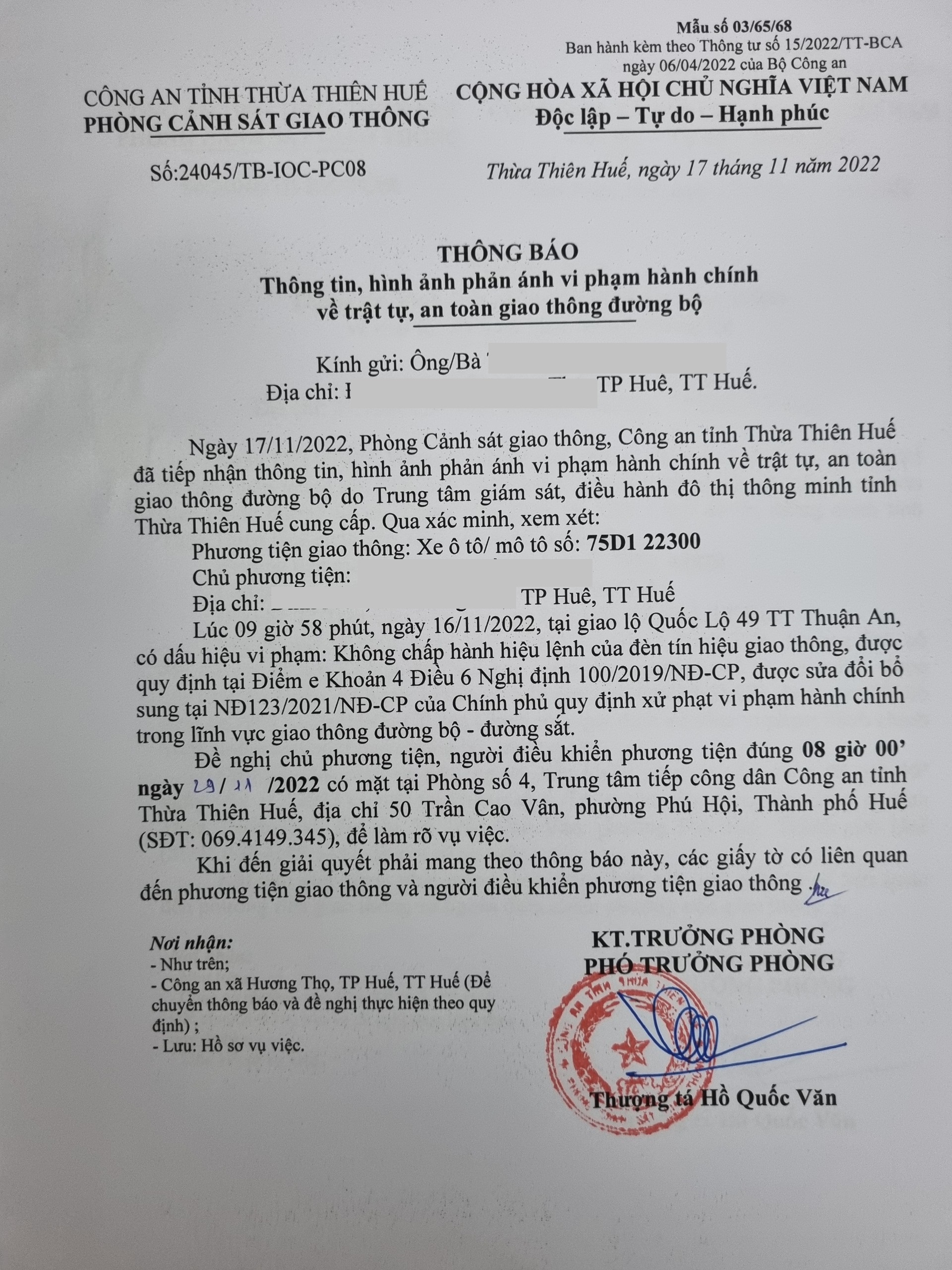 Phòng CSGT đã gửi thông báo, yêu cầu chủ phương tiện đến làm việc theo quy định của pháp luật. Tuy nhiên, đã quá ngày hẹn nhưng chủ phương tiện vẫn chưa đến làm việc theo yêu cầu. Phòng CSGT sẽ tiếp tục thông báo Công an địa phương nơi chủ phương tiện thường trú; đồng thời, thông báo các tổ tuần tra kiểm soát trên địa bàn, trong quá trình làm nhiệm vụ nếu phát hiện sẽ tiến hành dừng xe để xử lý.