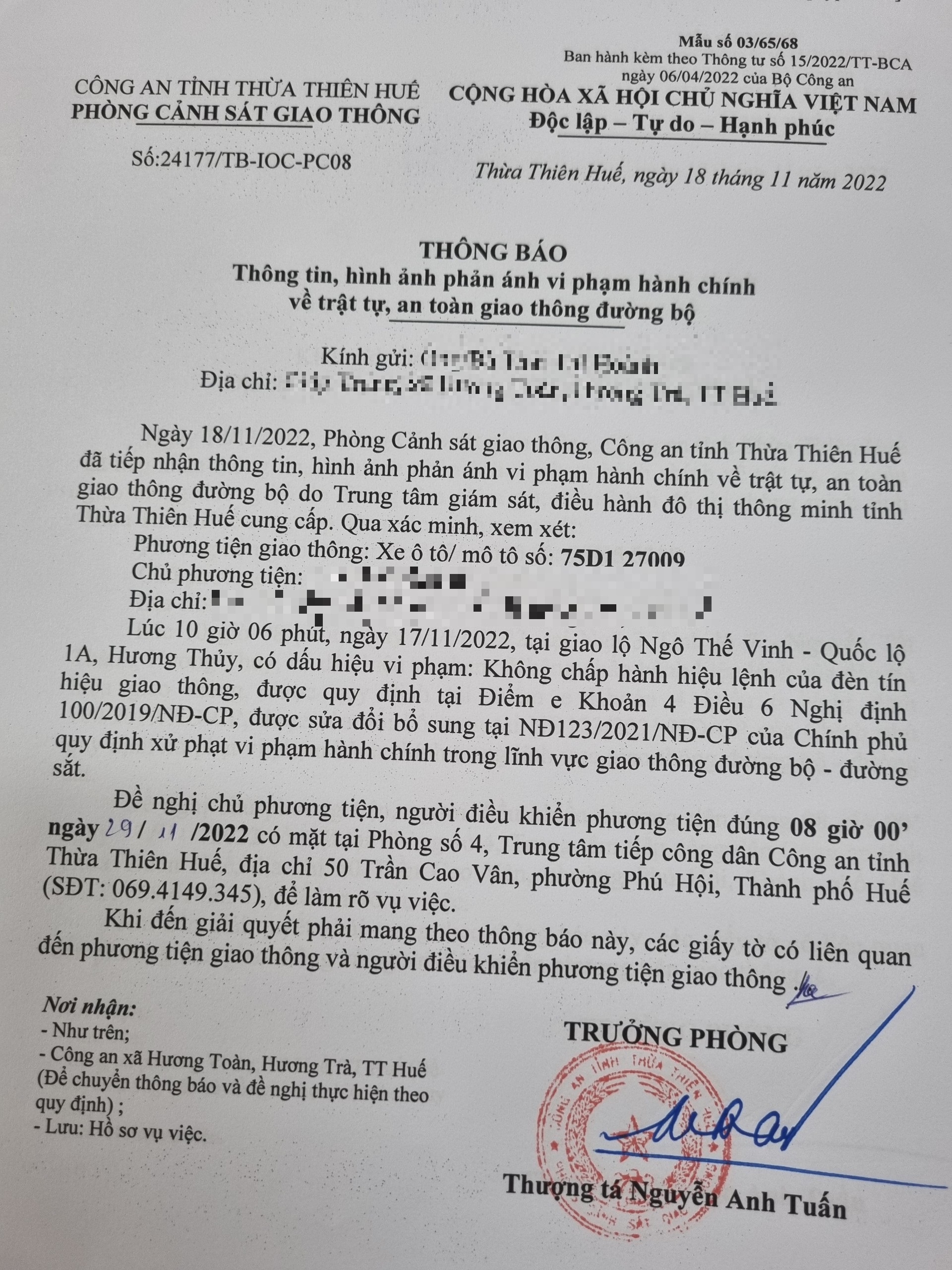 Phòng CSGT đã gửi thông báo, yêu cầu chủ phương tiện đến làm việc theo quy định của pháp luật. Tuy nhiên, đã quá ngày hẹn nhưng chủ phương tiện vẫn chưa đến làm việc theo yêu cầu. Phòng CSGT sẽ tiếp tục thông báo Công an địa phương nơi chủ phương tiện thường trú; đồng thời, thông báo các tổ tuần tra kiểm soát trên địa bàn, trong quá trình làm nhiệm vụ nếu phát hiện sẽ tiến hành dừng xe để xử lý.