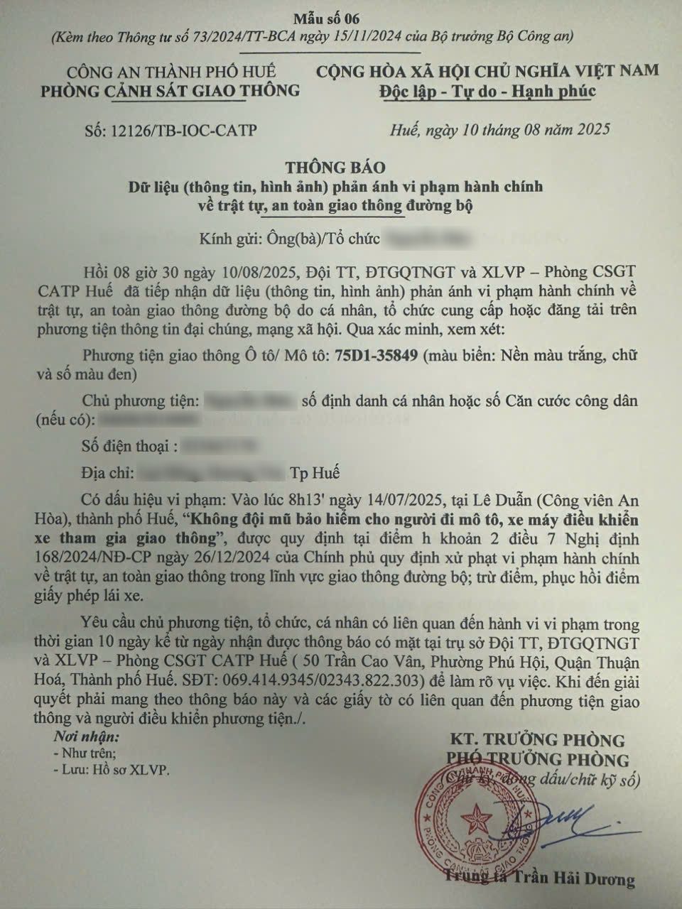Vấn đề quý Ông/Bà phản ánh, Phòng Cảnh sát giao thông – Công an thành phố Huế xin thông báo kết quả như sau: