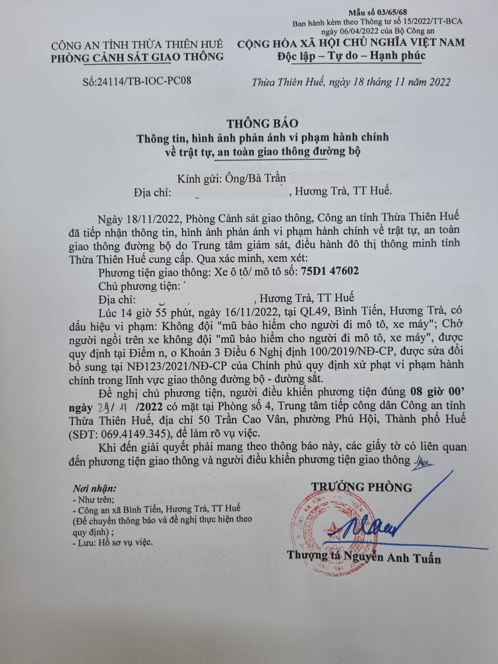 Vấn đề Ông/Bà phản ánh, Công an tỉnh đã chỉ đạo Phòng Cảnh sát giao thông kiểm tra và xin thông báo kết quả xử lý như sau: