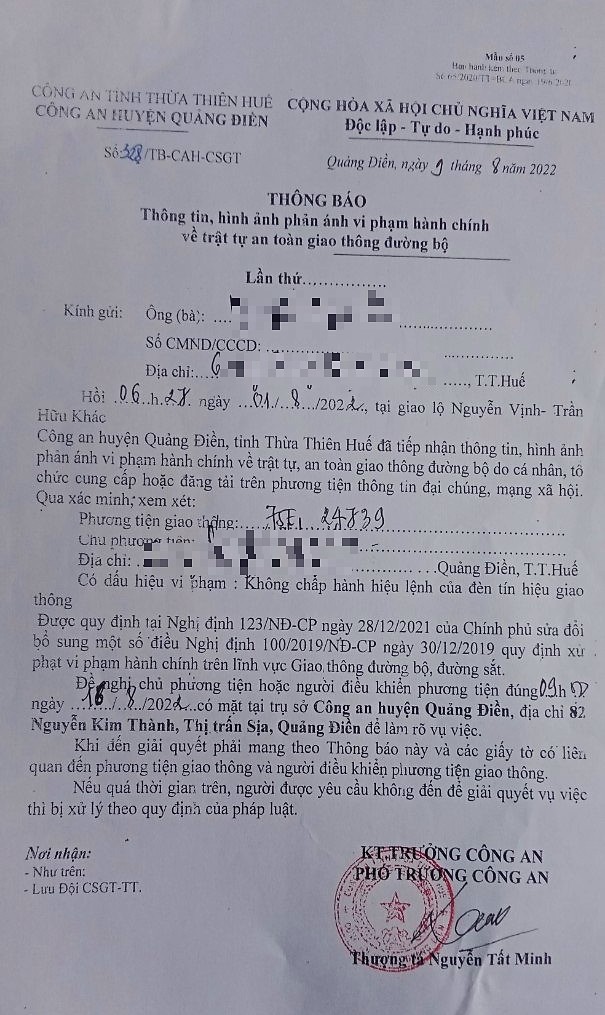 Vấn đề Ông/Bà phản ánh, Công an tỉnh đã chỉ đạo Công an huyện Quảng Điền xin thông báo kết quả xử lý như sau: