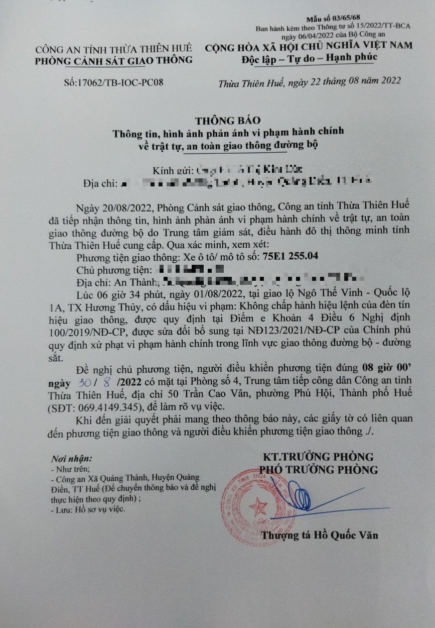 Vấn đề Ông/Bà phản ánh, Công an tỉnh đã chỉ đạo Phòng Cảnh sát giao thông xin thông báo kết quả xử lý như sau: