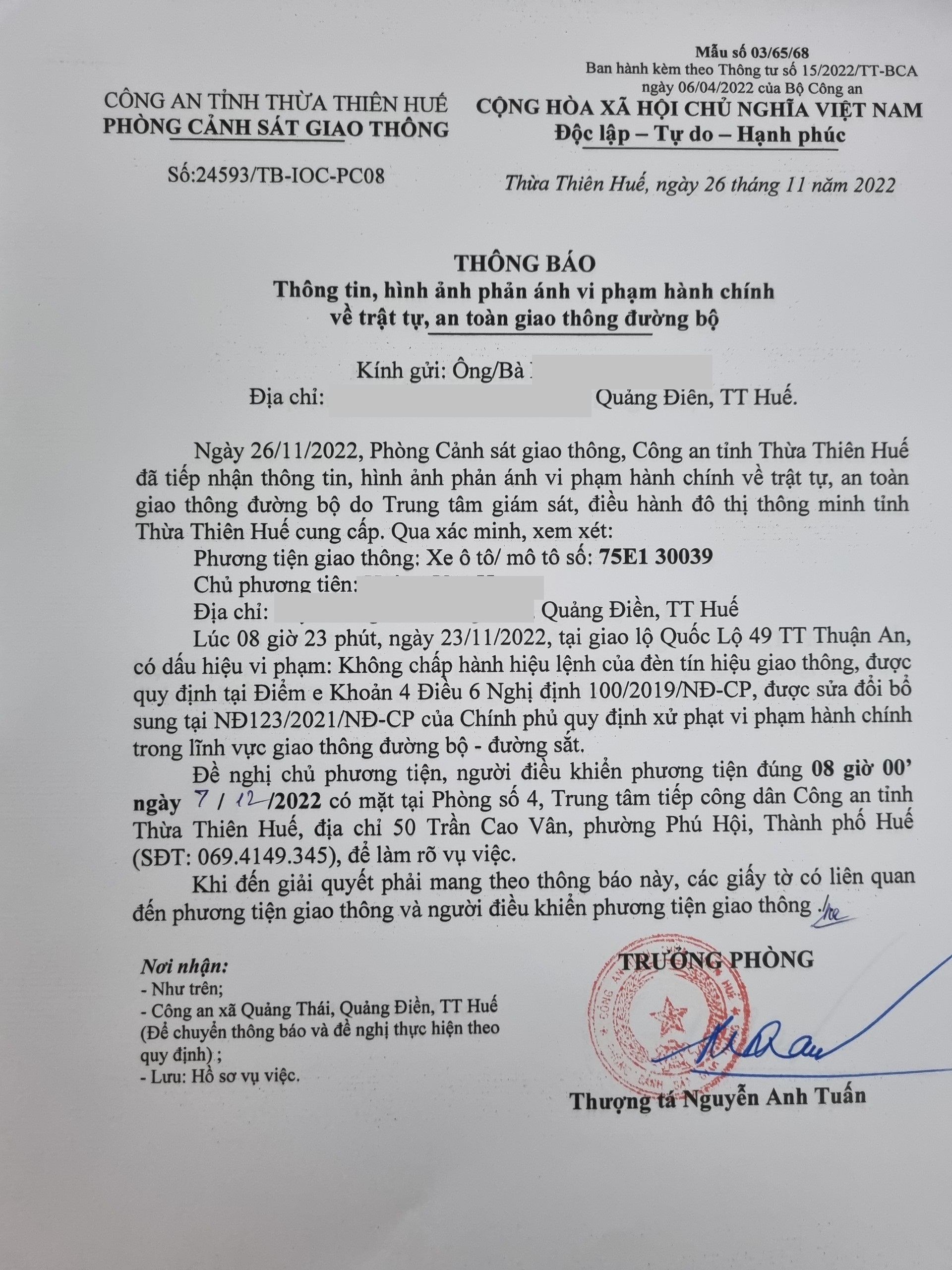 Vấn đề Ông/Bà phản ánh, Công an tỉnh đã chỉ đạo Phòng Cảnh sát giao thông xin thông báo kết quả xử lý như sau: