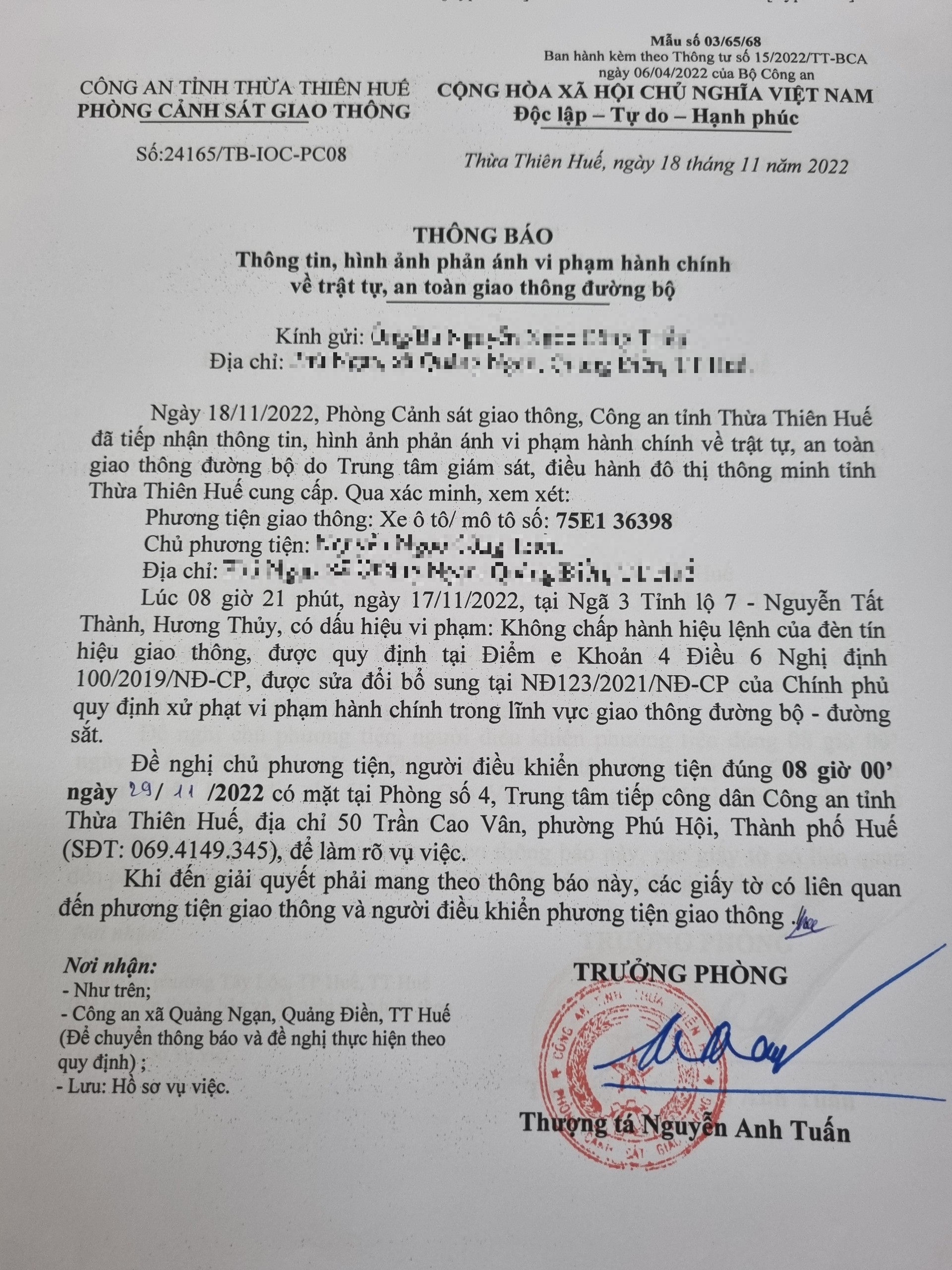 Vấn đề Ông/Bà phản ánh, Công an tỉnh đã chỉ đạo Phòng Cảnh sát giao thông xin thông báo kết quả xử lý như sau: