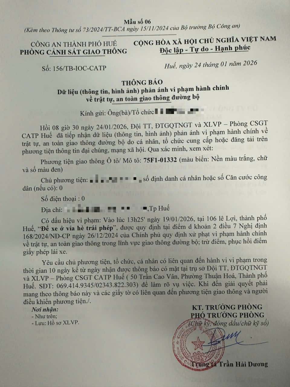 Vấn đề quý Ông/Bà phản ánh, Phòng Cảnh sát giao thông – Công an thành phố Huế đã kiểm tra và xin thông báo kết quả như sau: