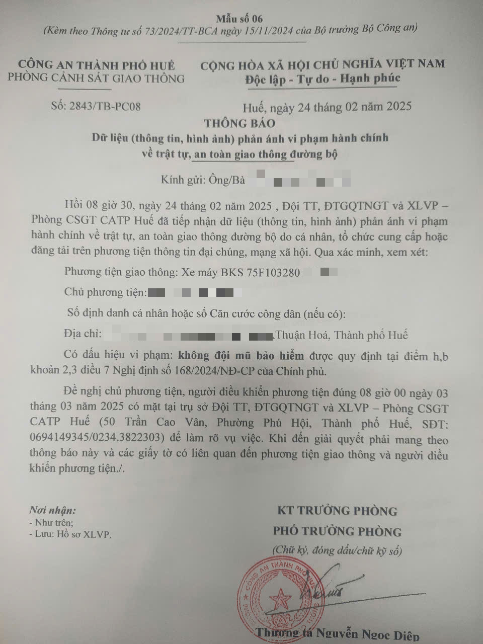 Vấn đề quý Ông/Bà phản ánh, Phòng Cảnh sát giao thông – Công an thành phố Huế đã kiểm tra và xin thông báo kết quả như sau:
