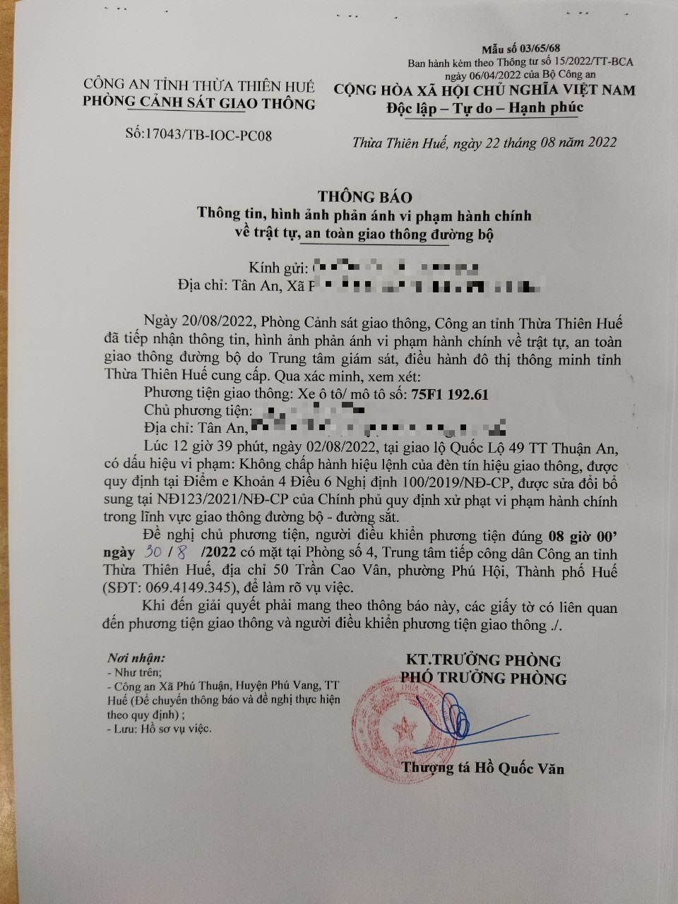 Phòng CSGT đã gửi thông báo, yêu cầu chủ phương tiện đến làm việc theo quy định của pháp luật. Tuy nhiên, đã quá ngày hẹn nhưng chủ phương tiện vẫn chưa đến làm việc theo yêu cầu. Phòng CSGT sẽ tiếp tục thông báo Công an địa phương nơi chủ phương tiện thường trú; đồng thời, thông báo các tổ tuần tra kiểm soát trên địa bàn, trong quá trình làm nhiệm vụ nếu phát hiện sẽ tiến hành dừng xe để xử lý.