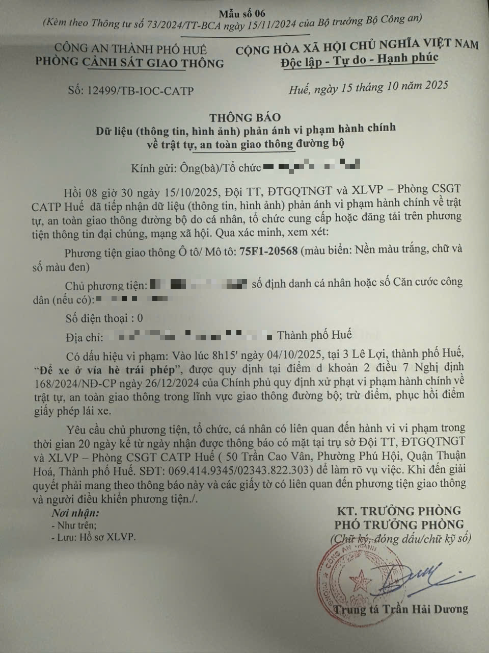 Vấn đề quý Ông/Bà phản ánh, Phòng Cảnh sát giao thông – Công an thành phố Huế đã kiểm tra và xin thông báo kết quả như sau:
