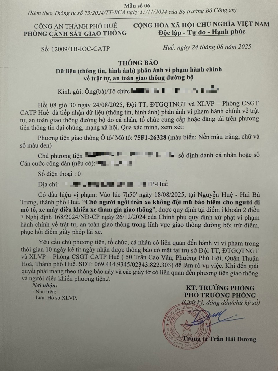 Vấn đề quý Ông/Bà phản ánh, Phòng Cảnh sát giao thông – Công an thành phố Huế đã kiểm tra và xin thông báo kết quả như sau: