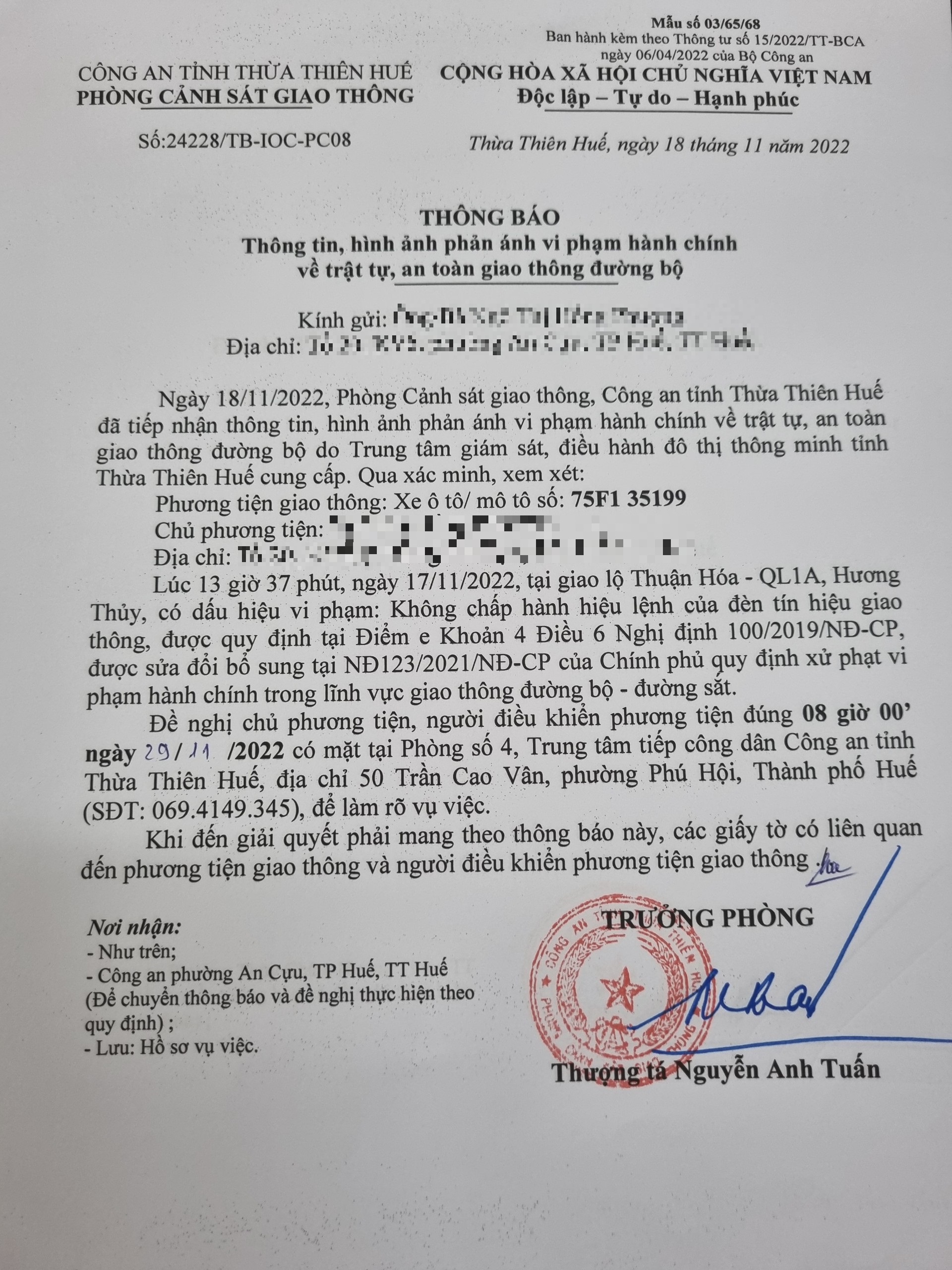 Vấn đề Ông/Bà phản ánh, Công an tỉnh đã chỉ đạo Phòng Cảnh sát giao thông xin thông báo kết quả xử lý như sau: