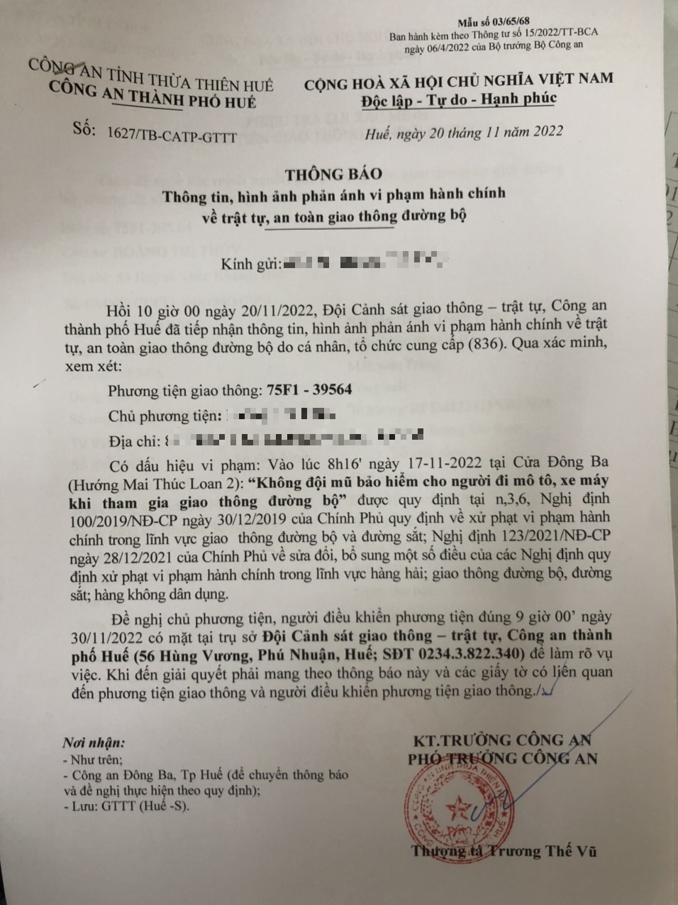 Vấn đề Ông/Bà phản ánh, Công an tỉnh đã chỉ đạo Công an thành phố Huế kiểm tra và xin thông báo kết quả xử lý như sau: