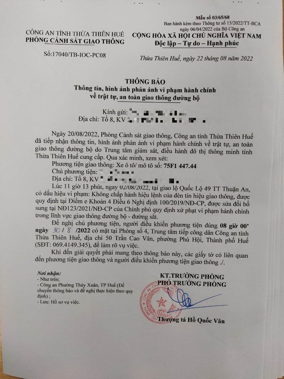 Phòng CSGT đã gửi thông báo, yêu cầu chủ phương tiện đến làm việc theo quy định của pháp luật. Tuy nhiên, đã quá ngày hẹn nhưng chủ phương tiện vẫn chưa đến làm việc theo yêu cầu. Phòng CSGT sẽ tiếp tục thông báo Công an địa phương nơi chủ phương tiện thường trú; đồng thời, thông báo các tổ tuần tra kiểm soát trên địa bàn, trong quá trình làm nhiệm vụ nếu phát hiện sẽ tiến hành dừng xe để xử lý.