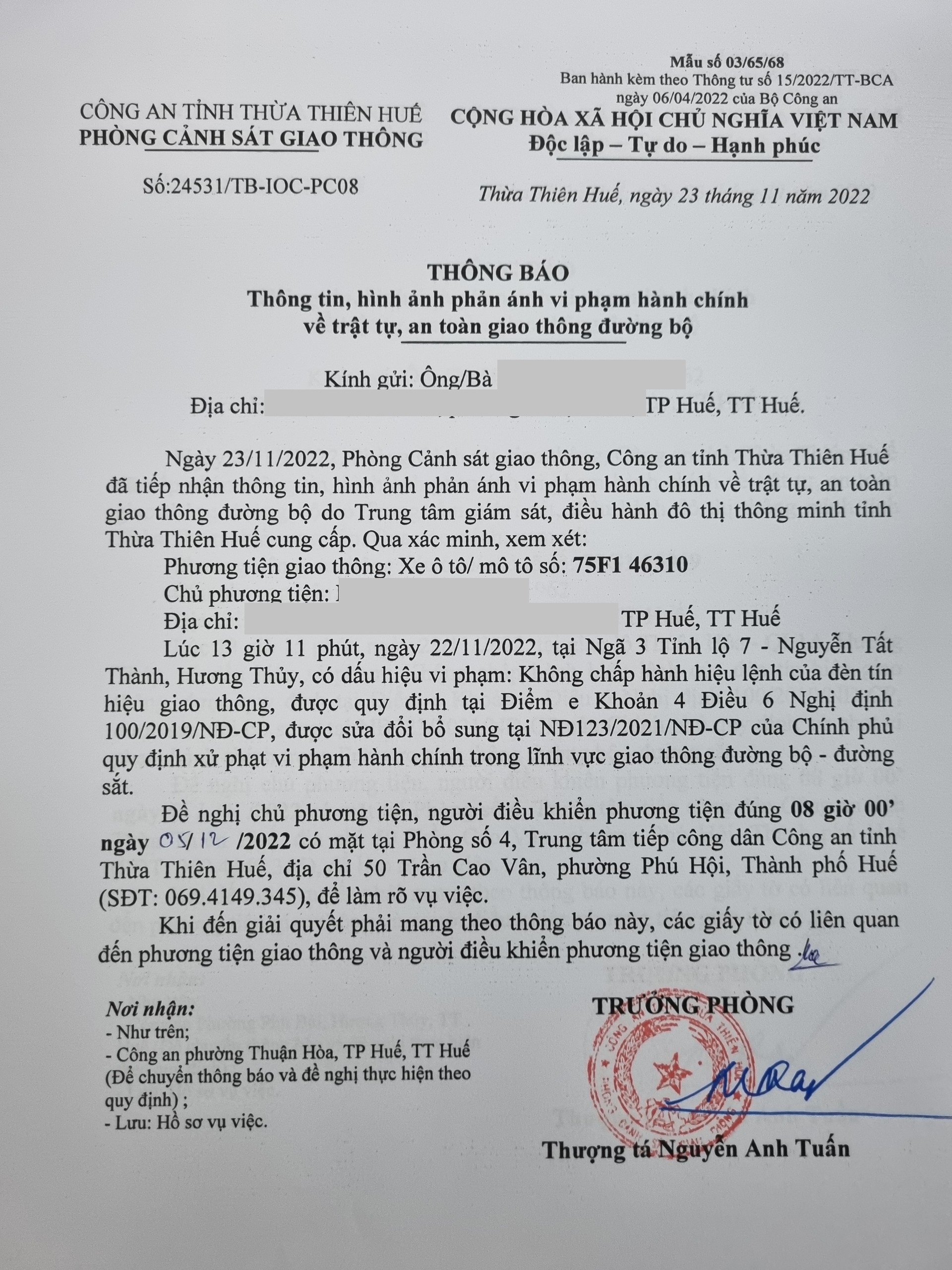 Vấn đề Ông/Bà phản ánh, Công an tỉnh đã chỉ đạo Phòng Cảnh sát giao thông xin thông báo kết quả xử lý như sau: