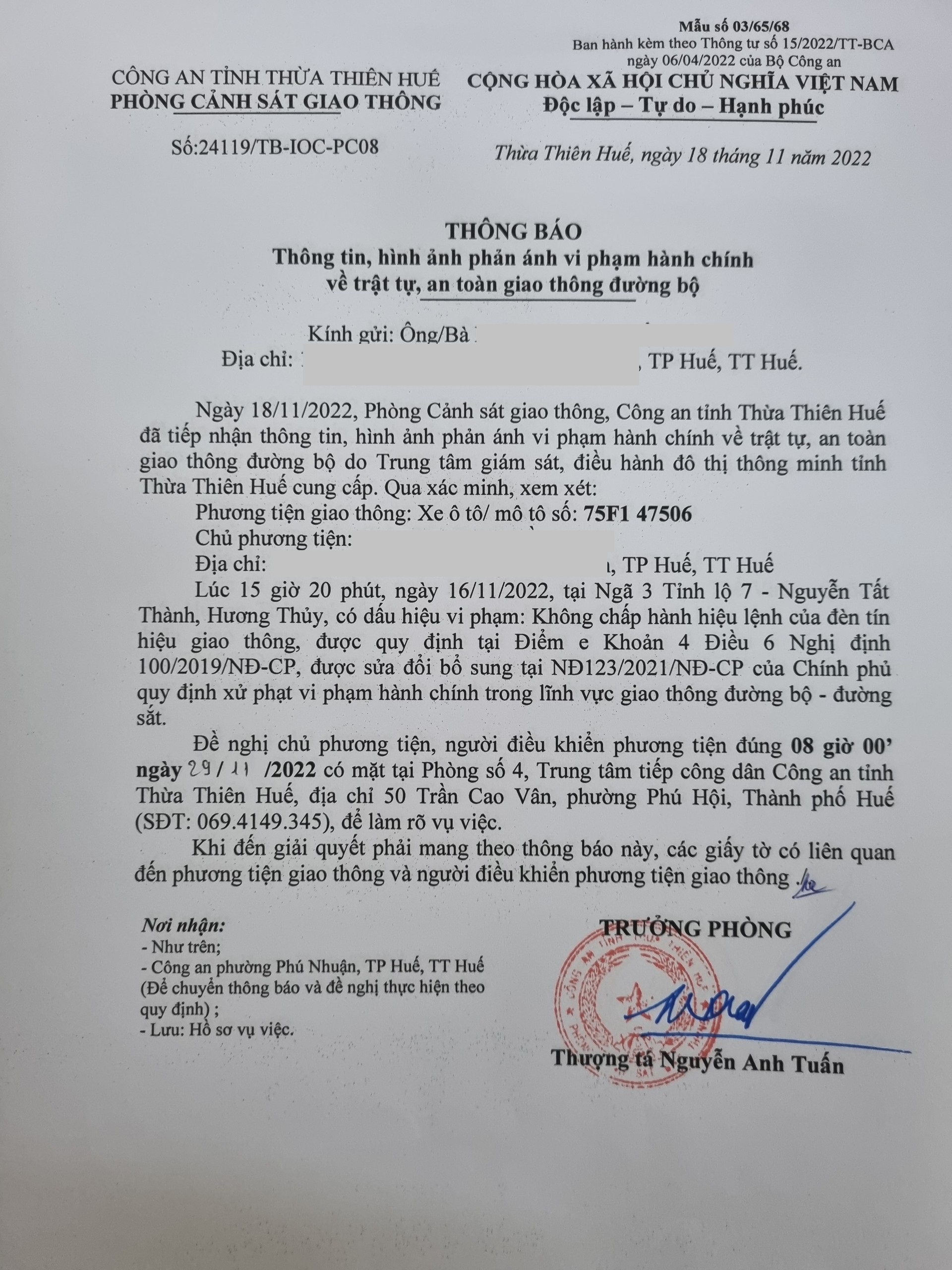 Phòng CSGT đã gửi thông báo, yêu cầu chủ phương tiện đến làm việc theo quy định của pháp luật. Tuy nhiên, đã quá ngày hẹn nhưng chủ phương tiện vẫn chưa đến làm việc theo yêu cầu. Phòng CSGT sẽ tiếp tục thông báo Công an địa phương nơi chủ phương tiện thường trú; đồng thời, thông báo các tổ tuần tra kiểm soát trên địa bàn, trong quá trình làm nhiệm vụ nếu phát hiện sẽ tiến hành dừng xe để xử lý.