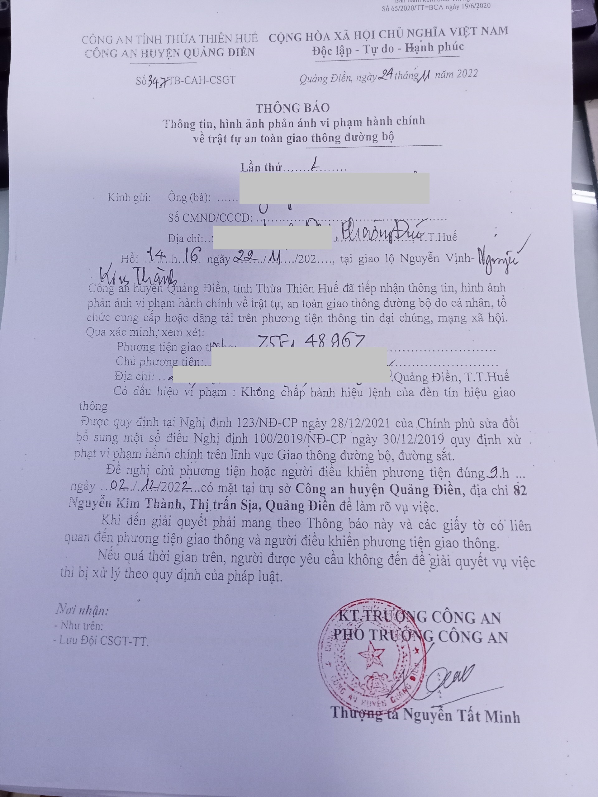 Vấn đề Ông/Bà phản ánh, Công an tỉnh đã chỉ đạo Công an huyện Quảng Điền xin thông báo kết quả xử lý như sau: